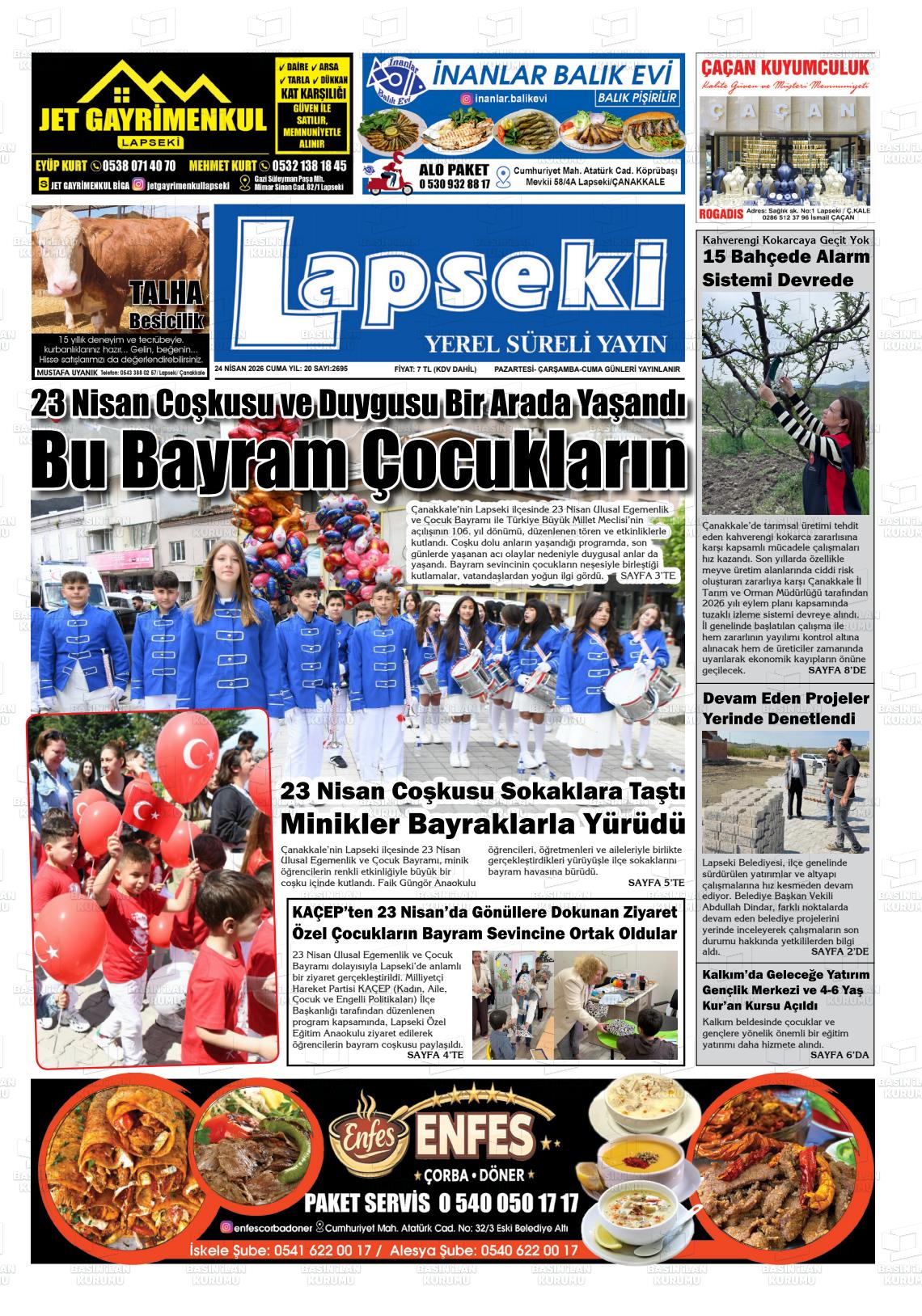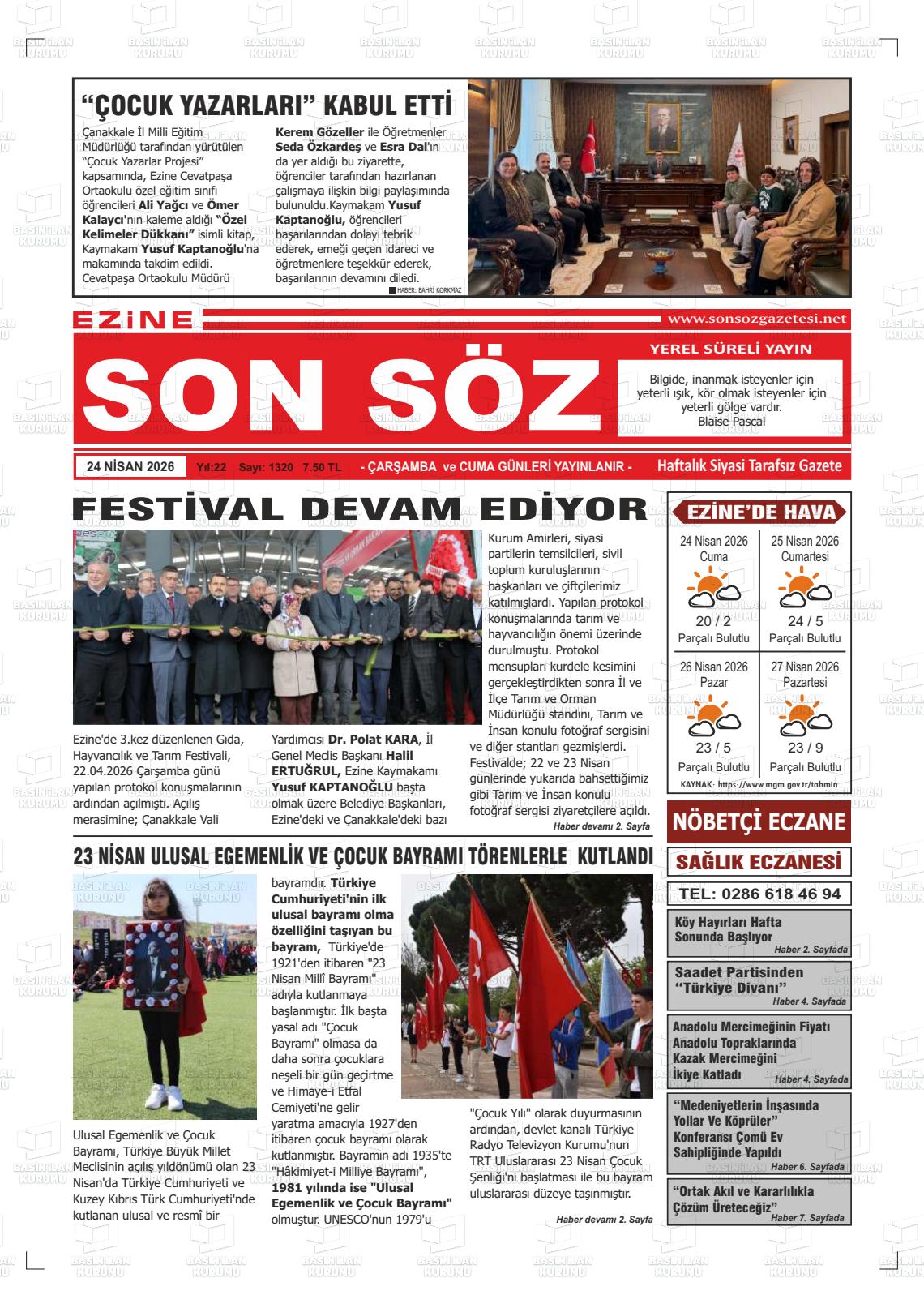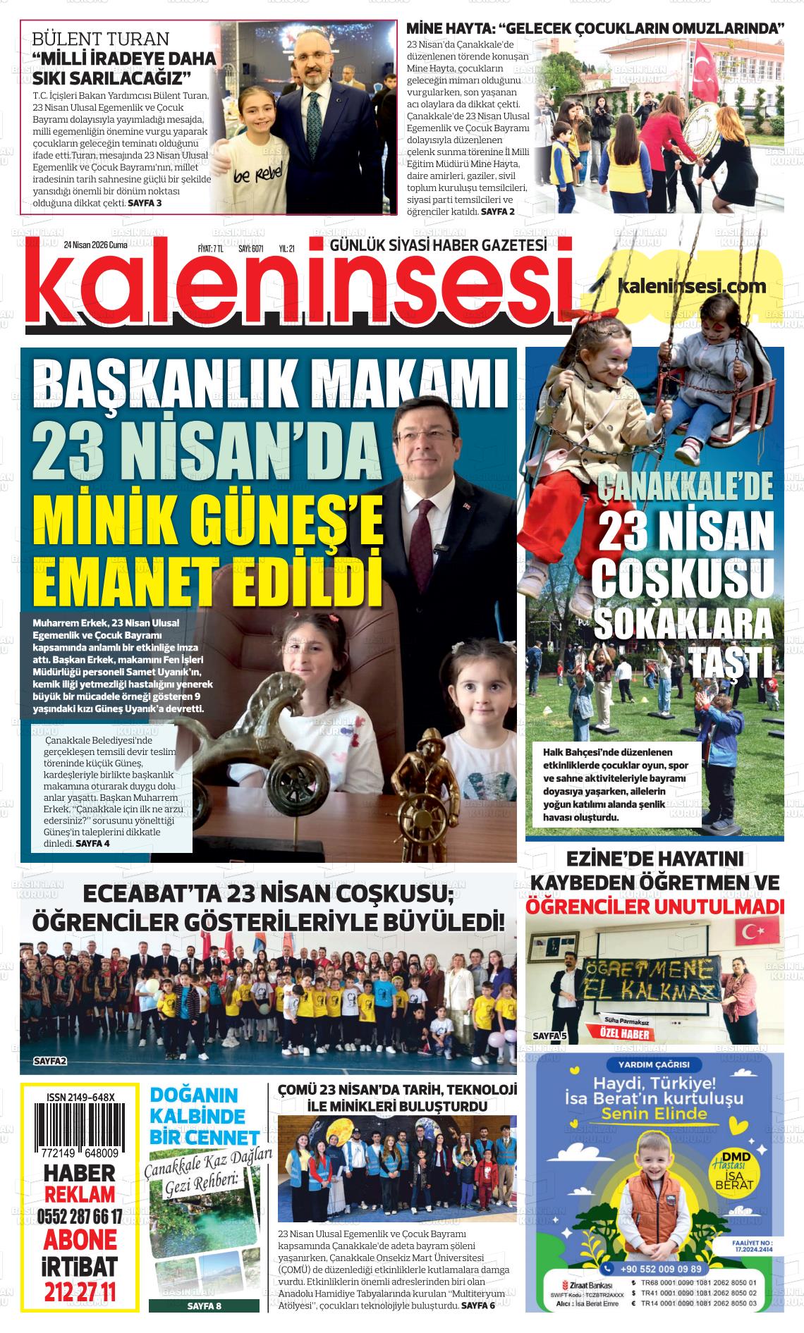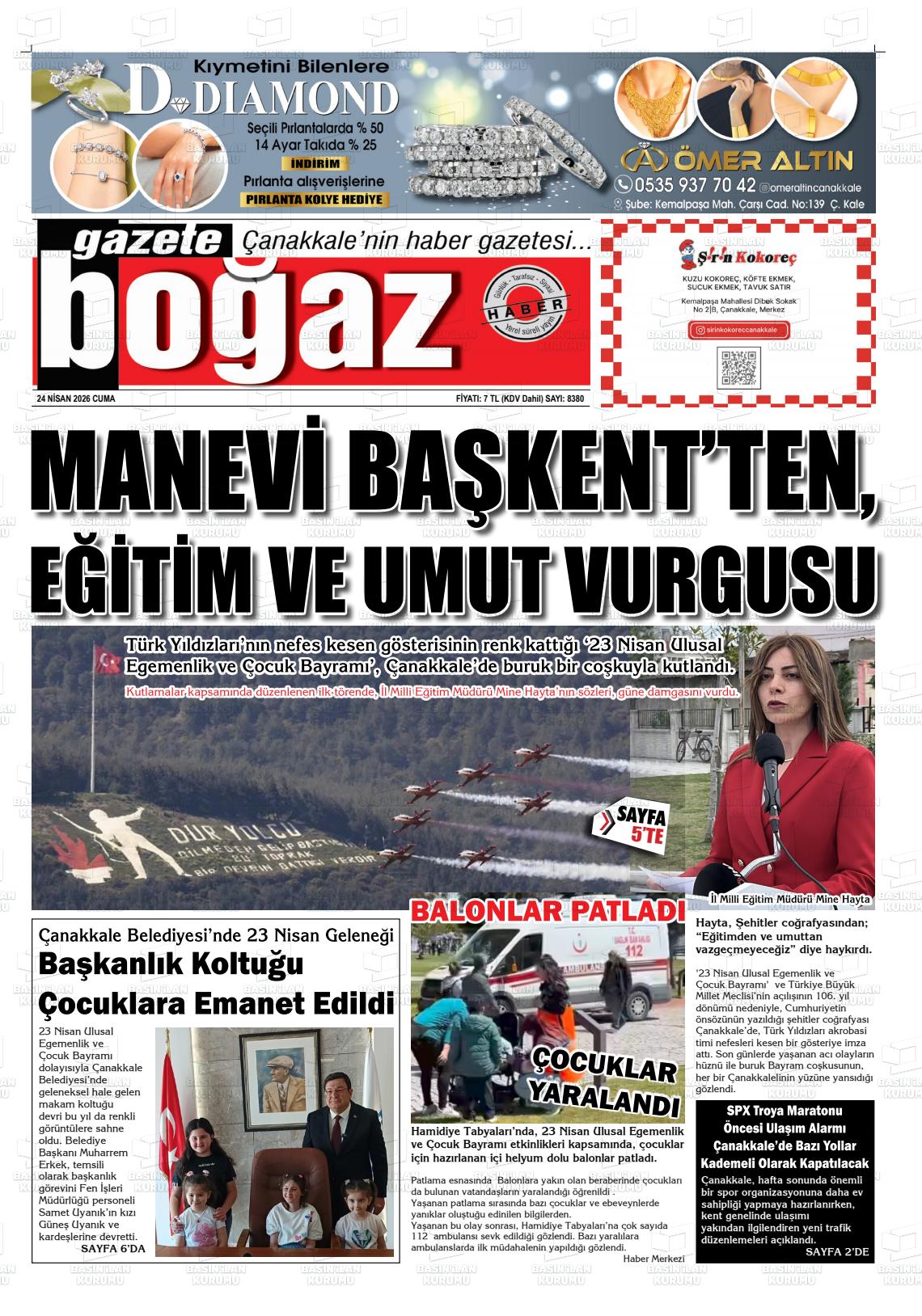 Çanakkale Yerel Gazeteleri 24 Nisan 2026, Cuma Günü Manşeti