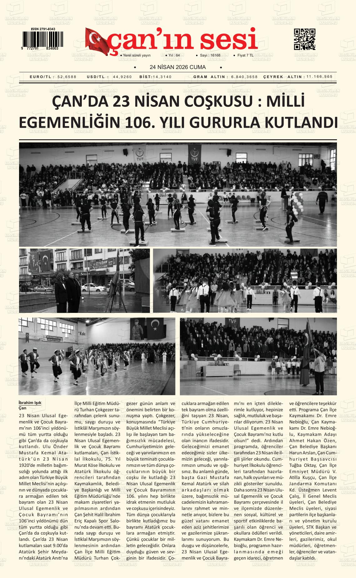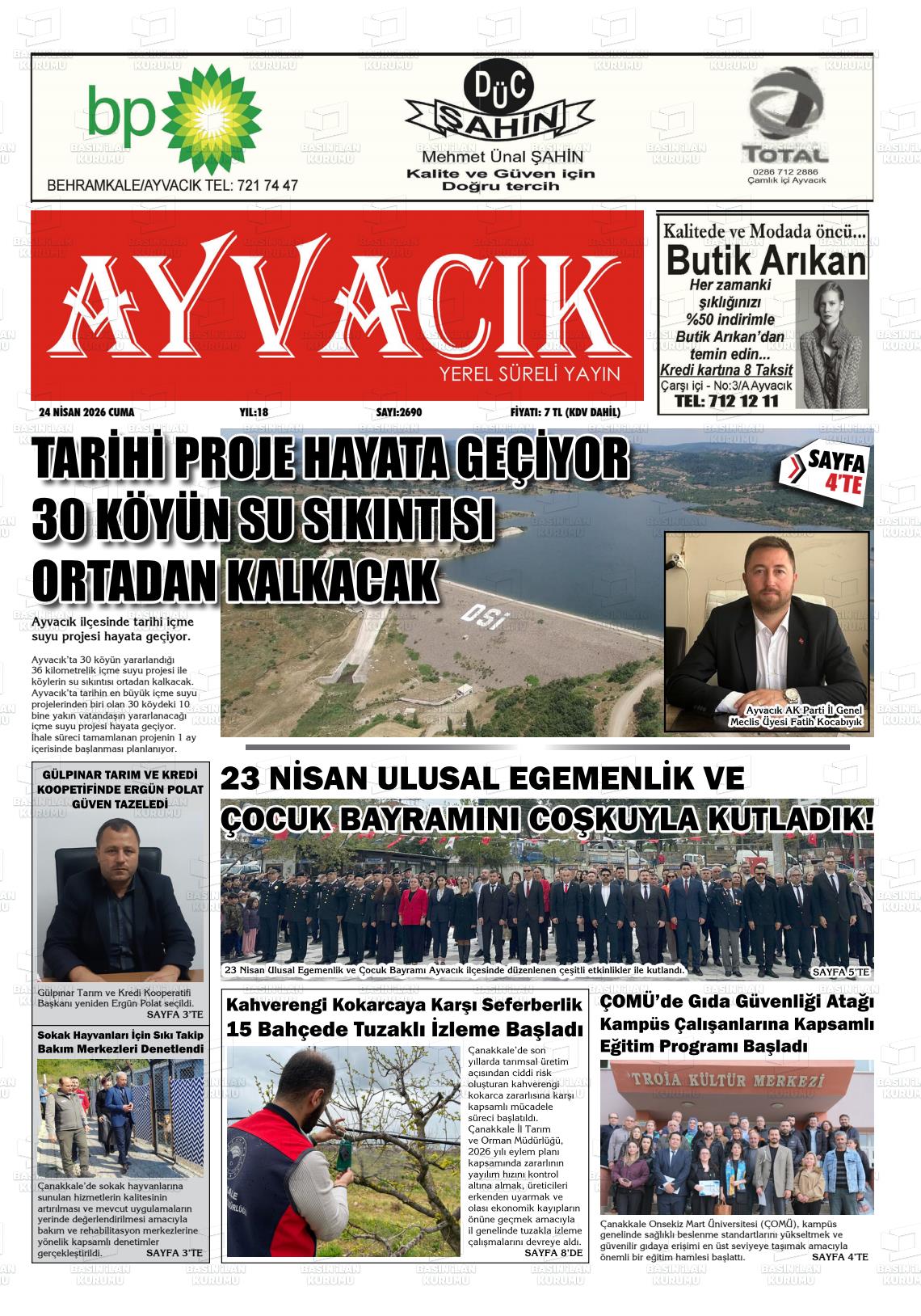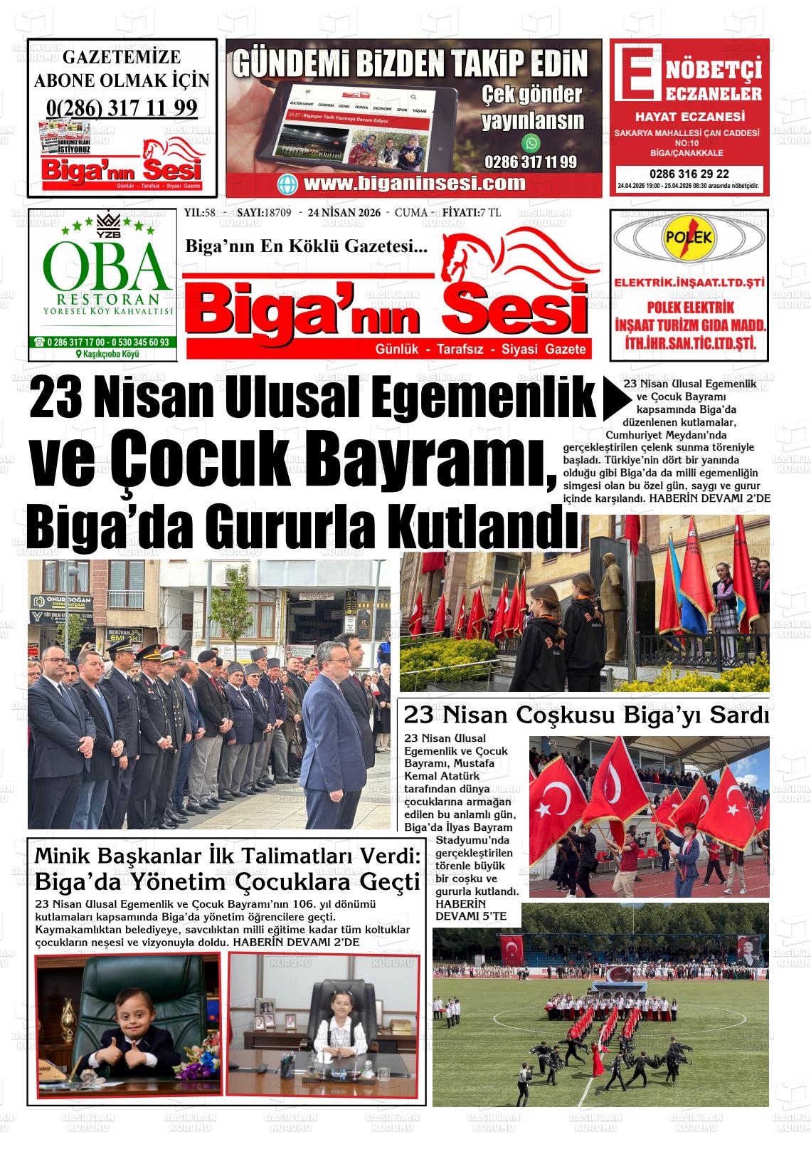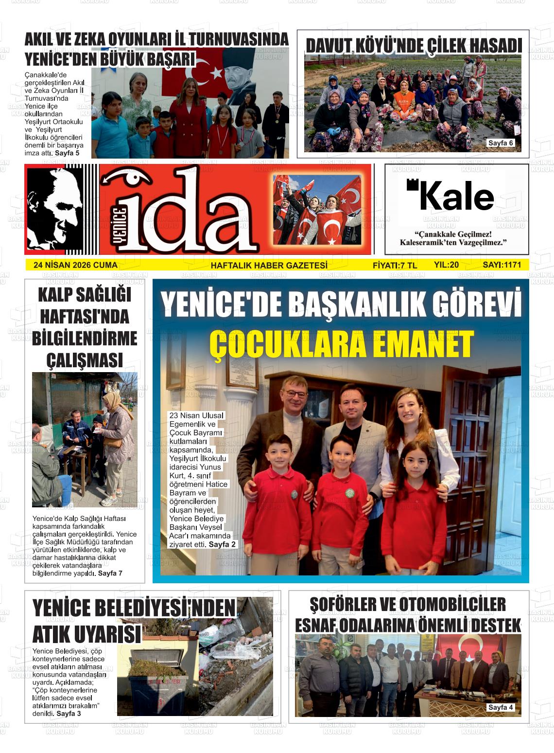 Çanakkale Yerel Gazeteleri 24 Nisan 2026, Cuma Günü Manşeti