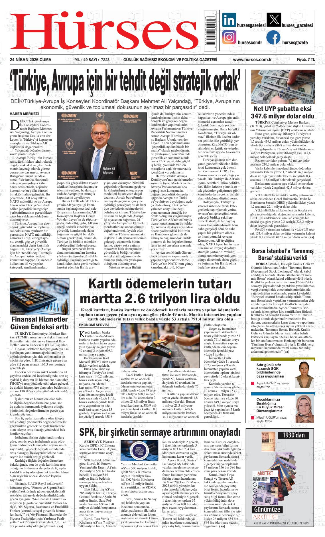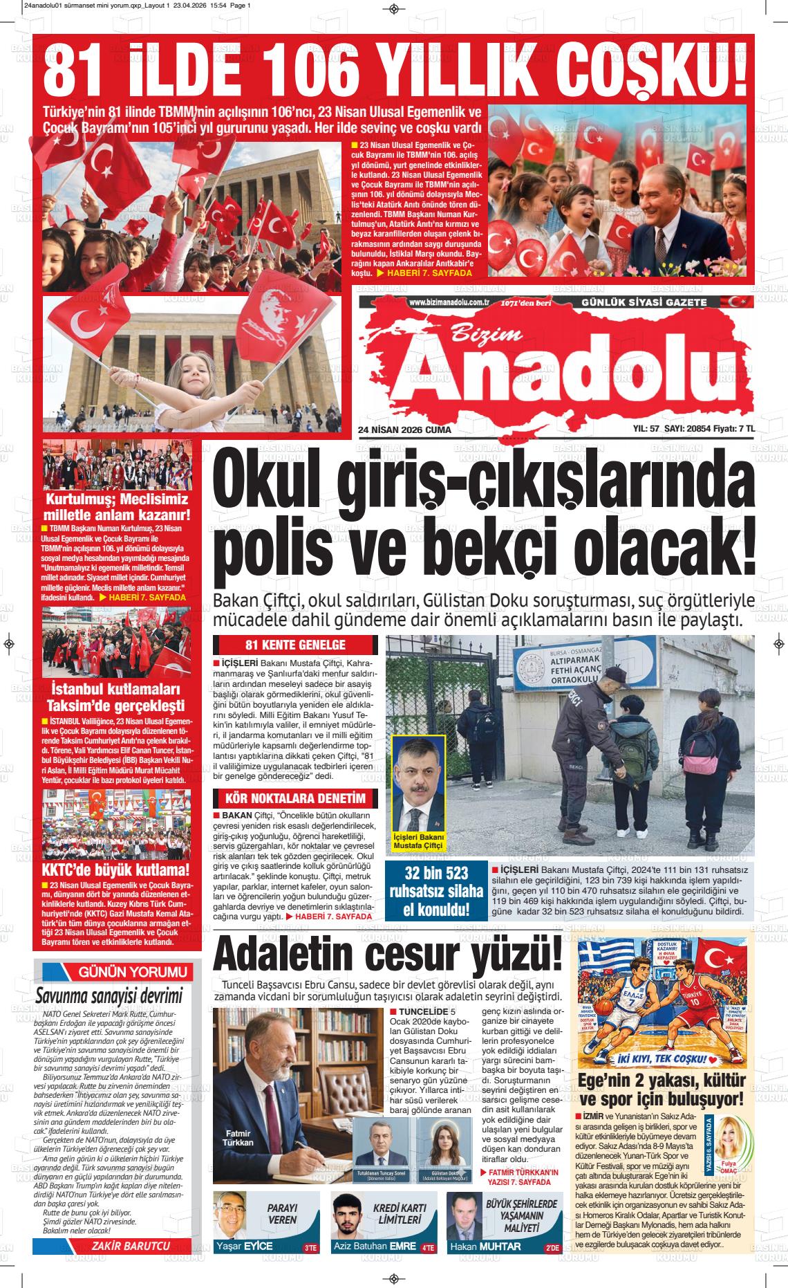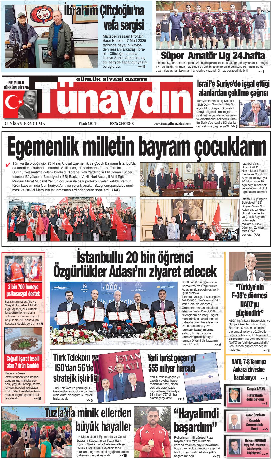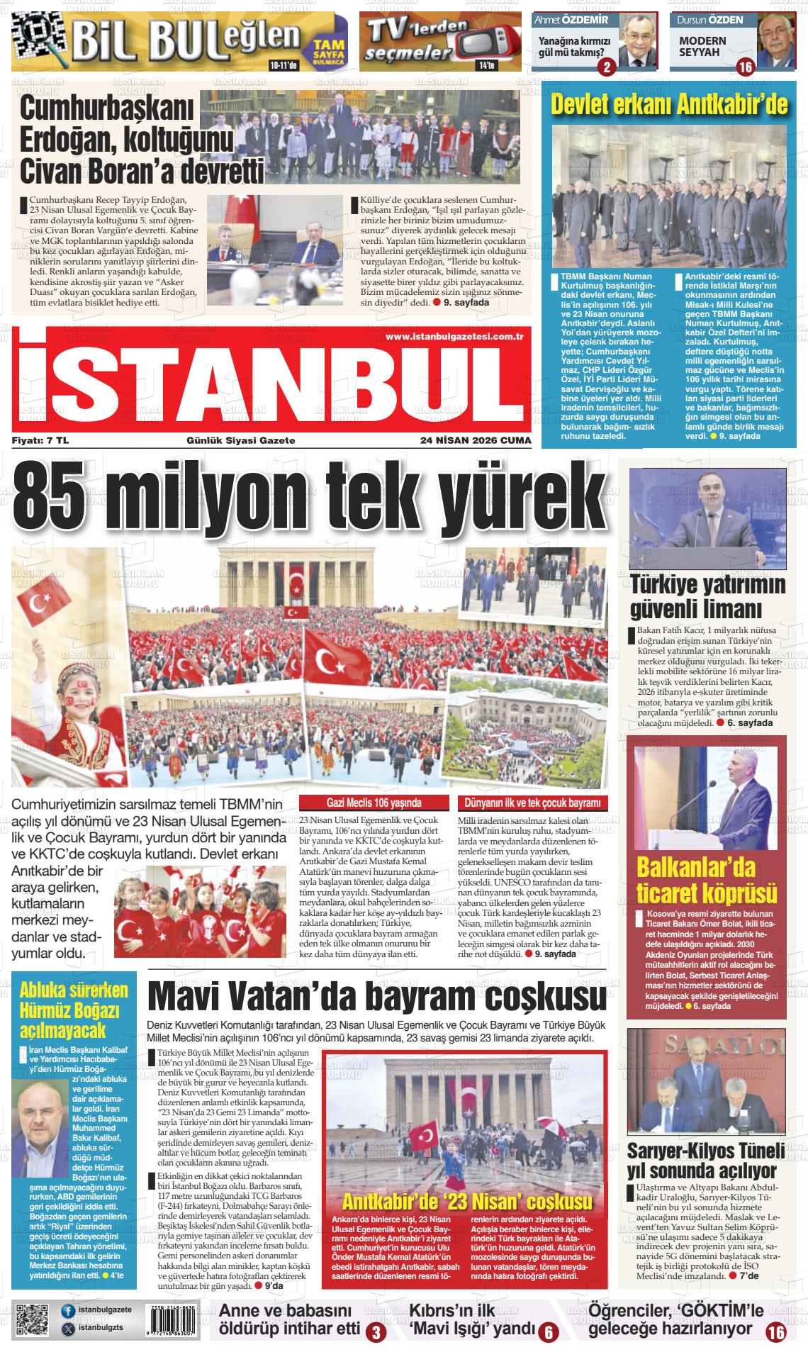İstanbul Yerel Gazeteleri 24 Nisan 2026, Cuma Günü Manşeti