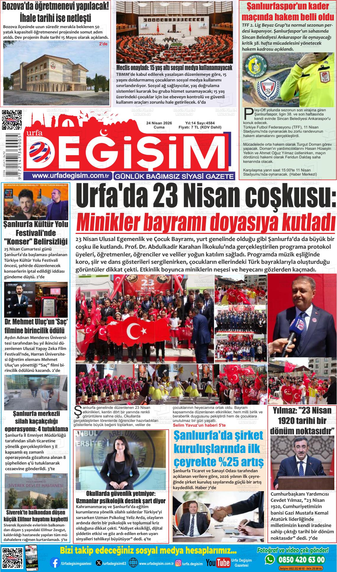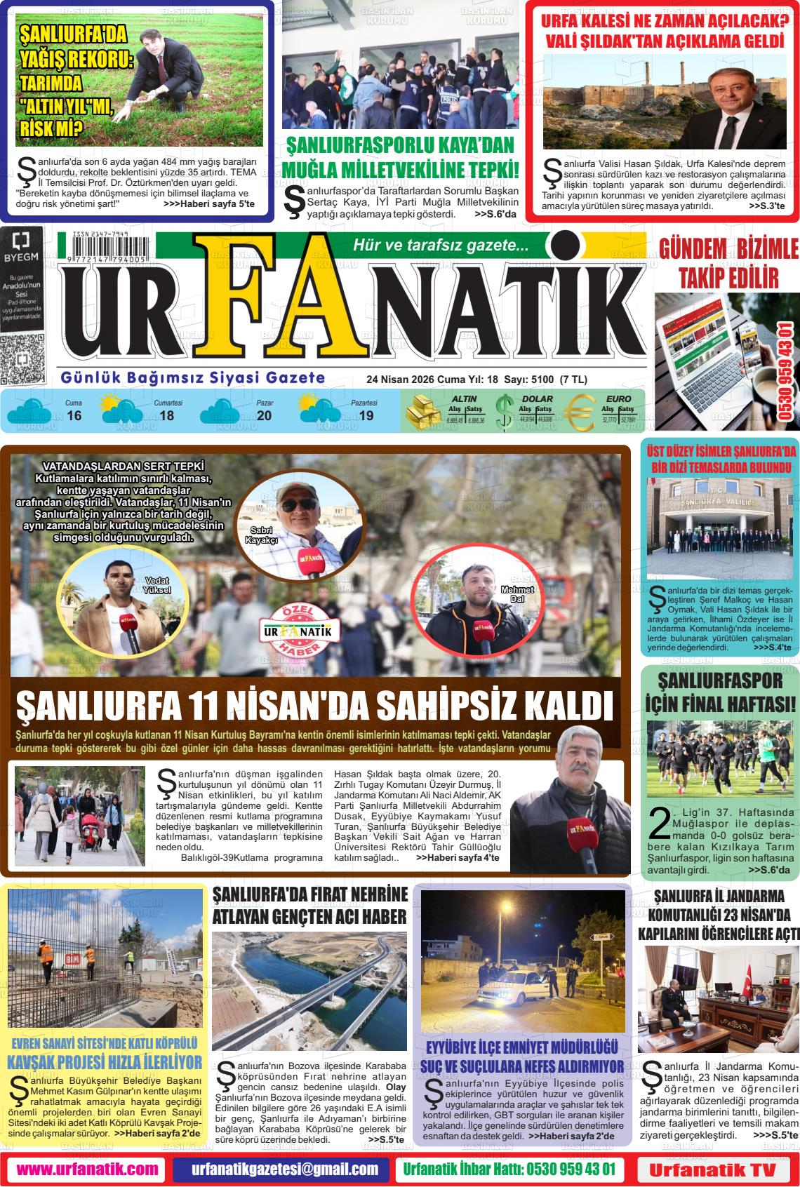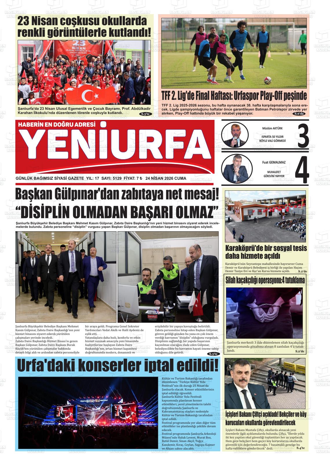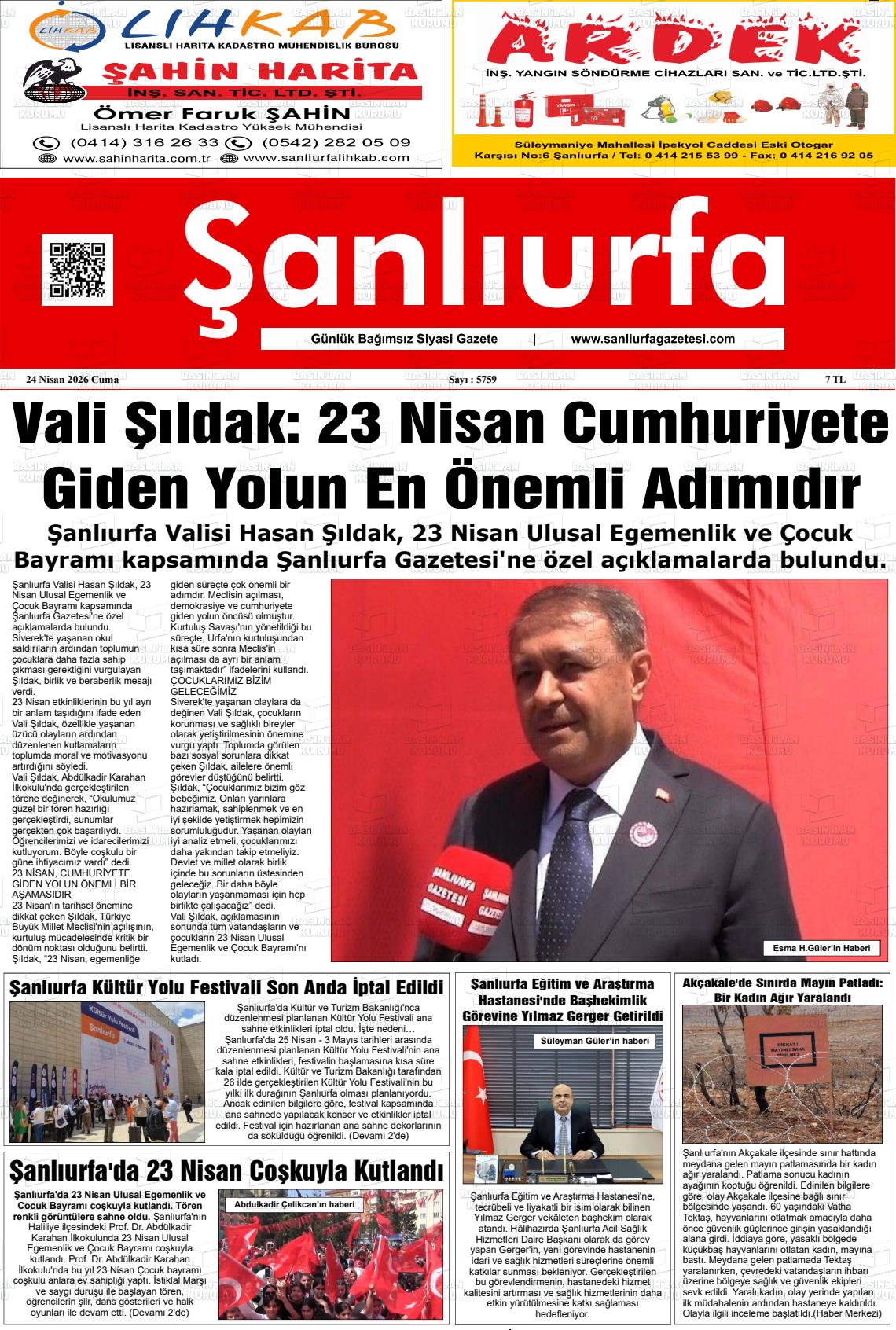 Şanlıurfa Yerel Gazeteleri 24 Nisan 2026, Cuma Günü Manşeti
