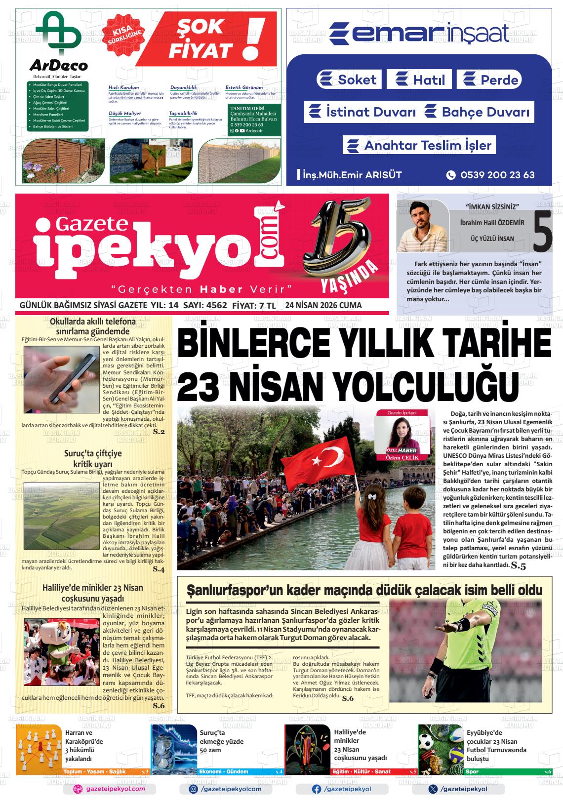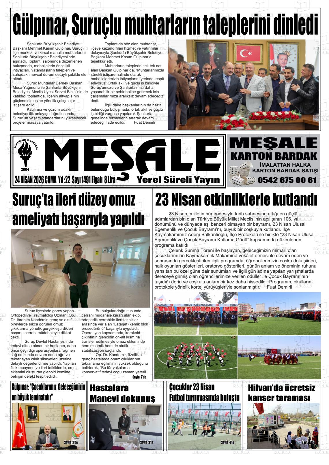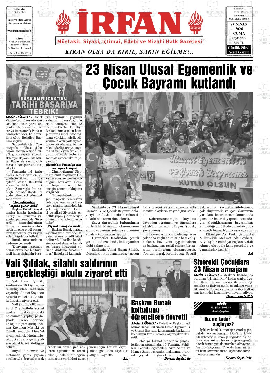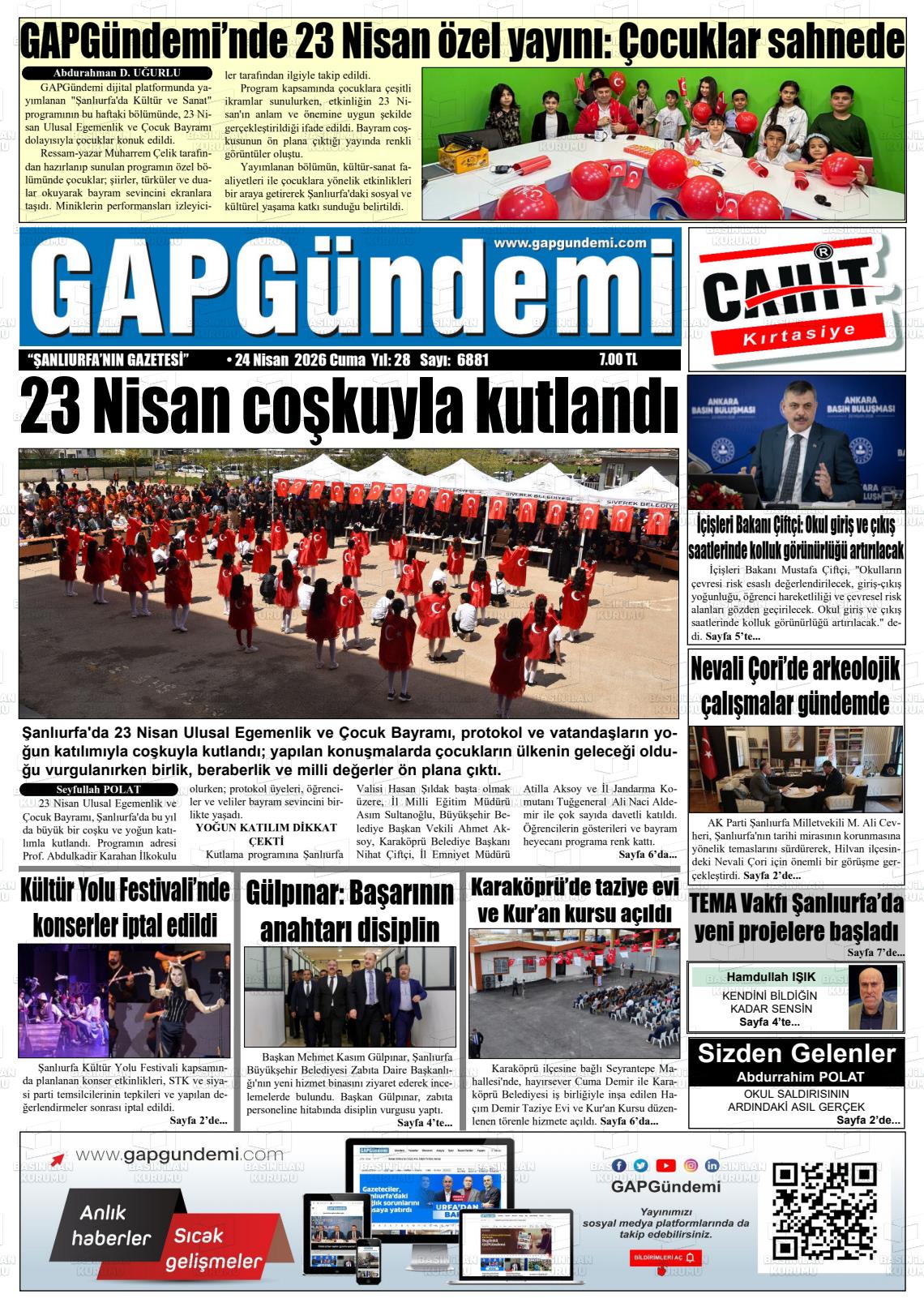 Şanlıurfa Yerel Gazeteleri 24 Nisan 2026, Cuma Günü Manşeti