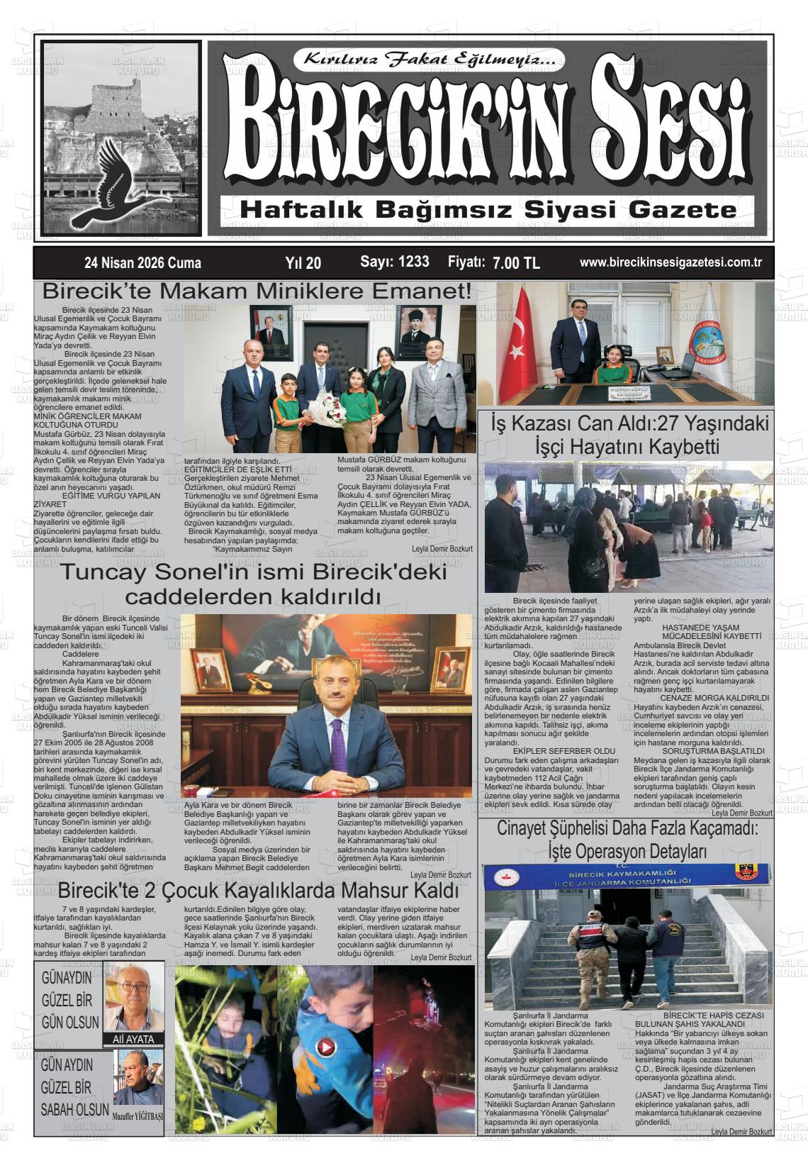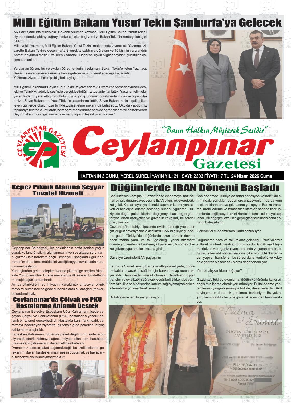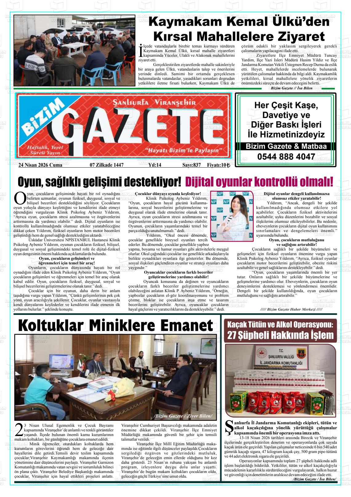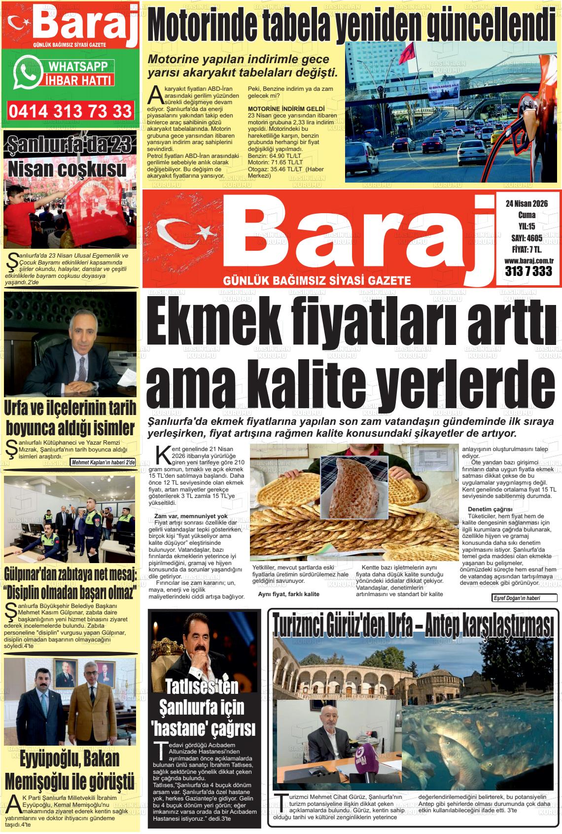 Şanlıurfa Yerel Gazeteleri 24 Nisan 2026, Cuma Günü Manşeti