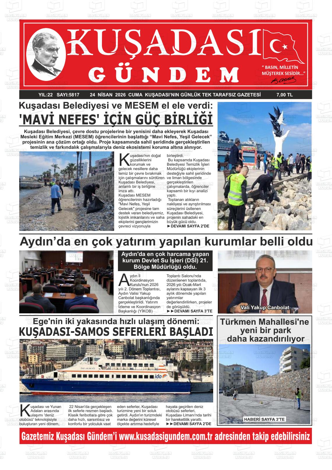 Aydın Yerel Gazeteleri 24 Nisan 2026, Cuma Günü Manşeti