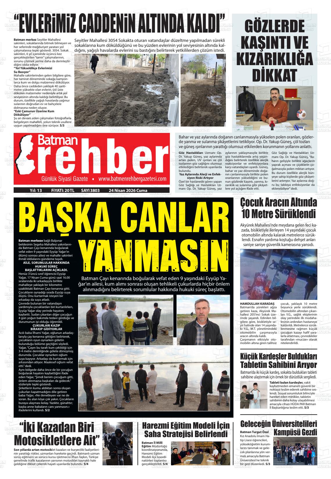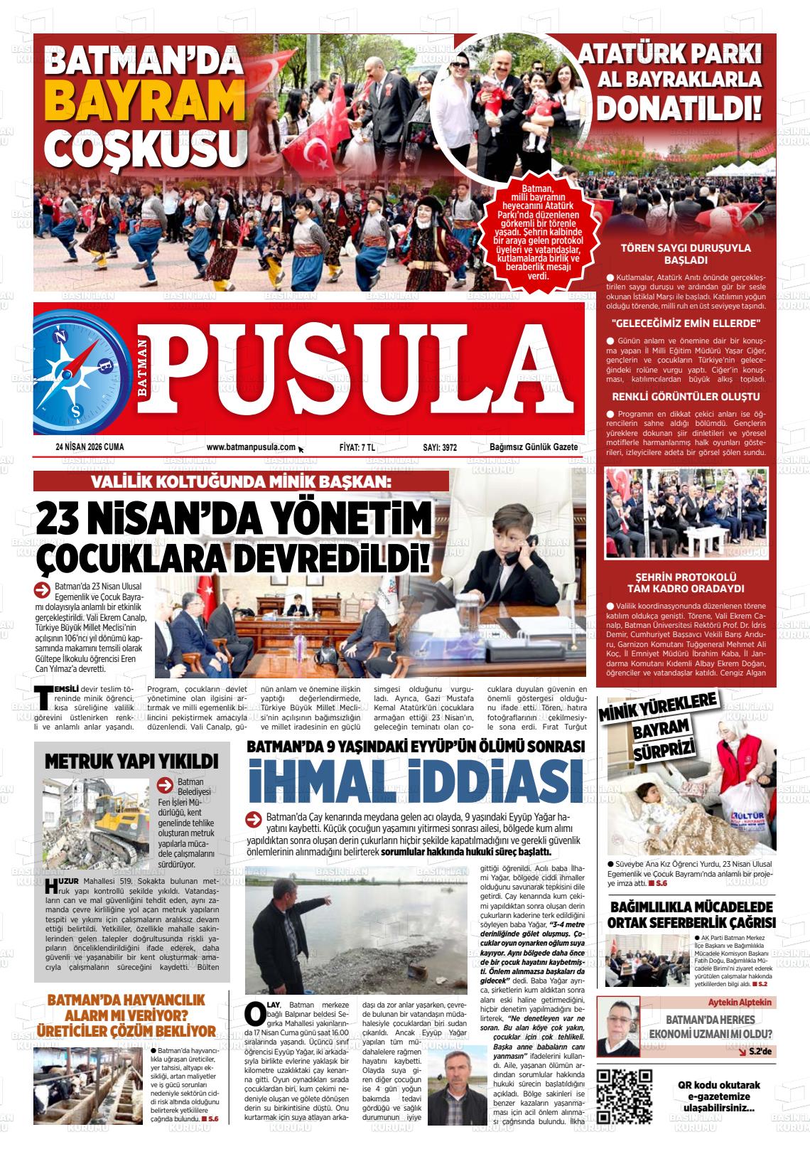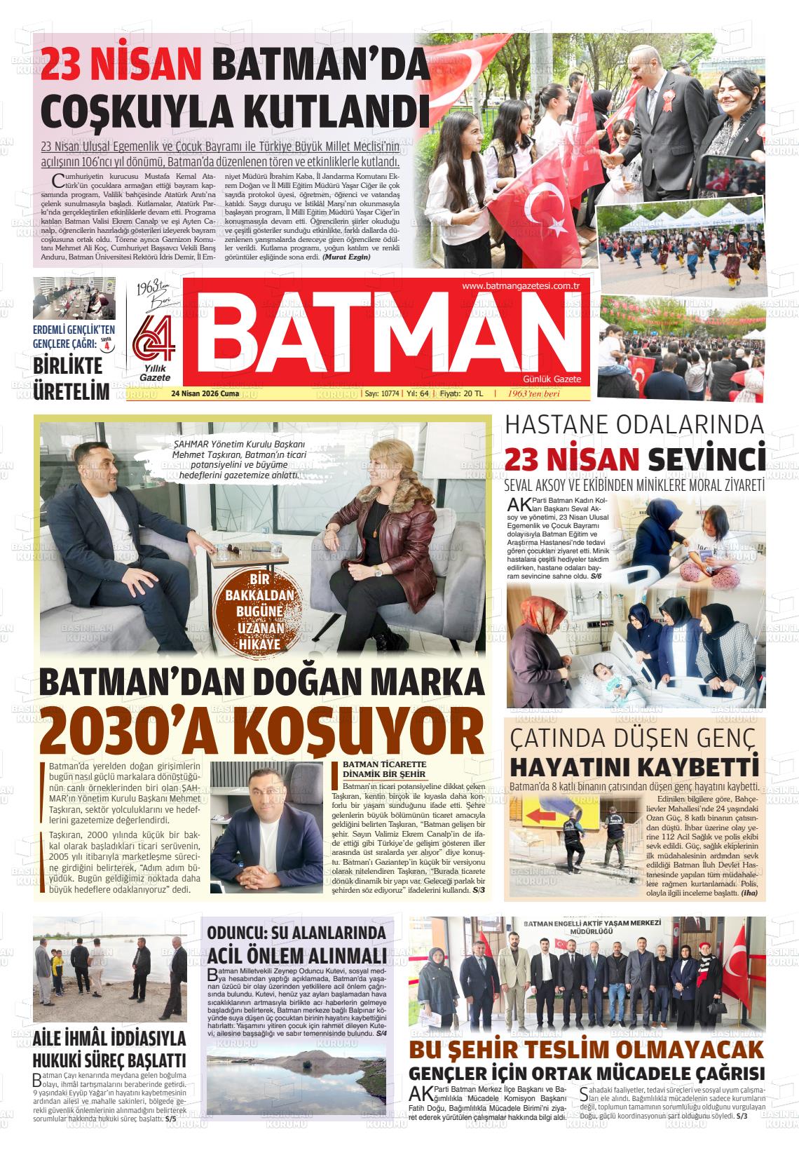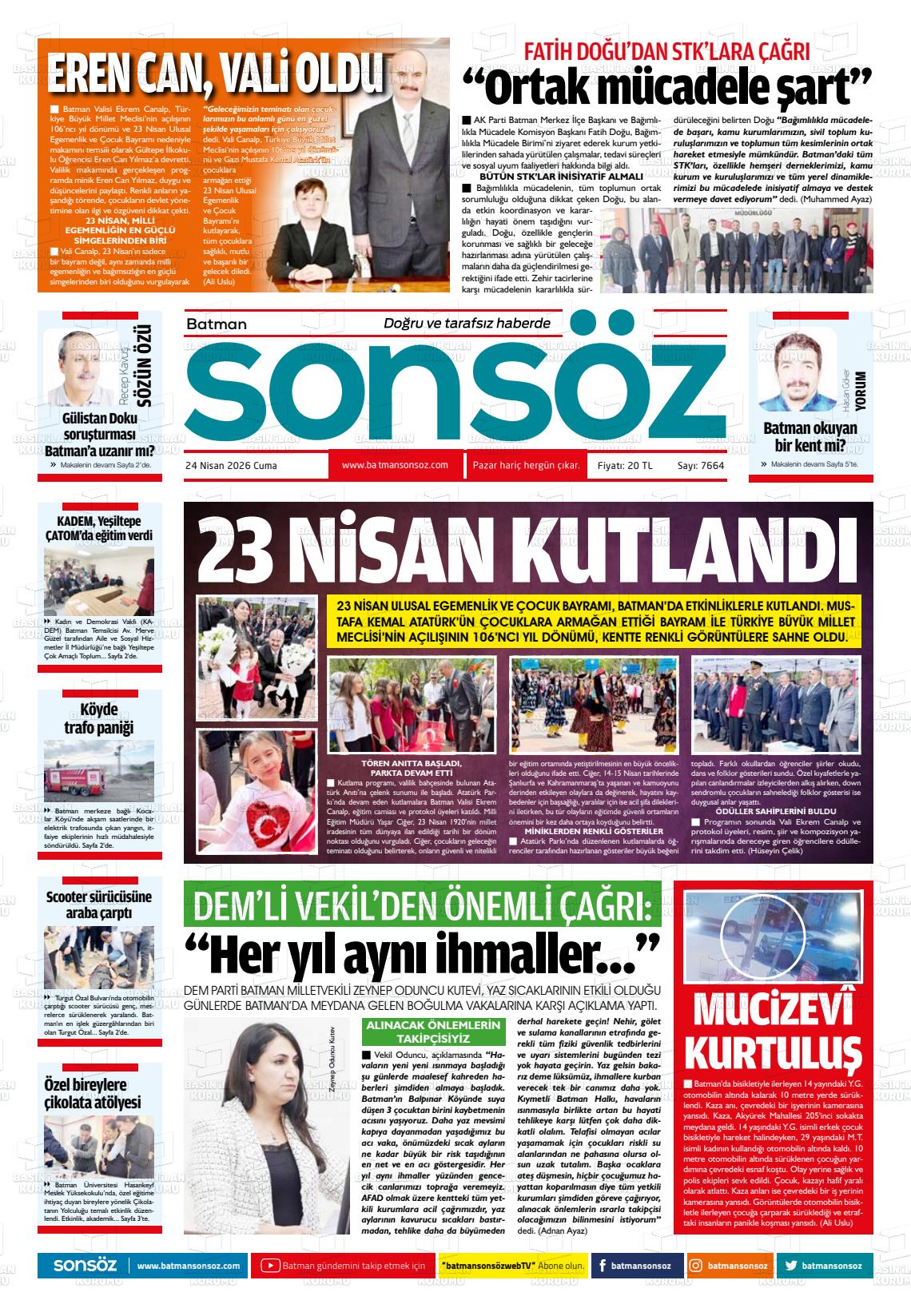 Batman Yerel Gazeteleri 24 Nisan 2026, Cuma Günü Manşeti