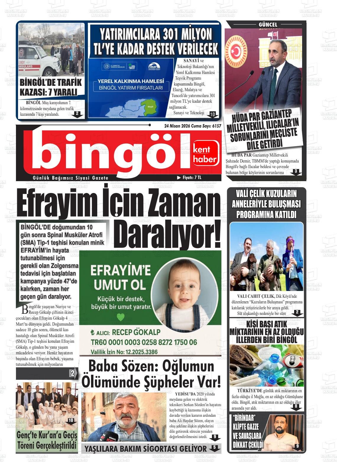 Bİngöl Yerel Gazeteleri 24 Nisan 2026, Cuma Günü Manşeti