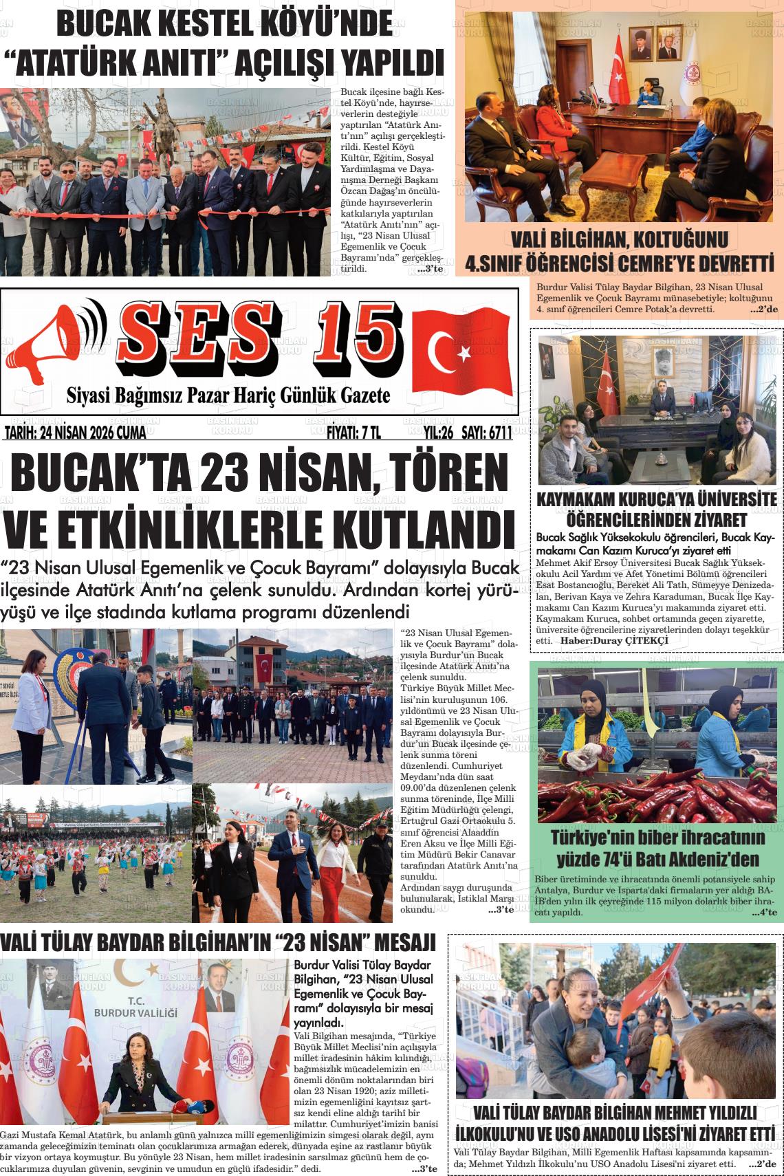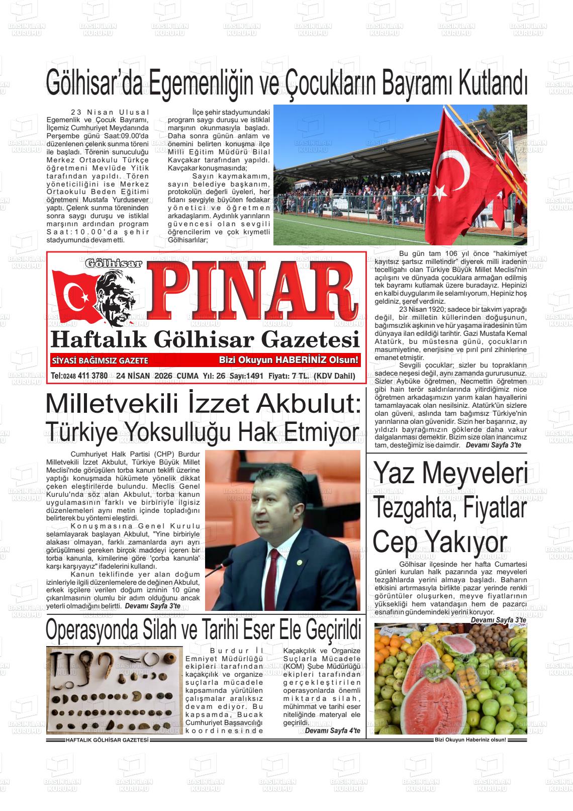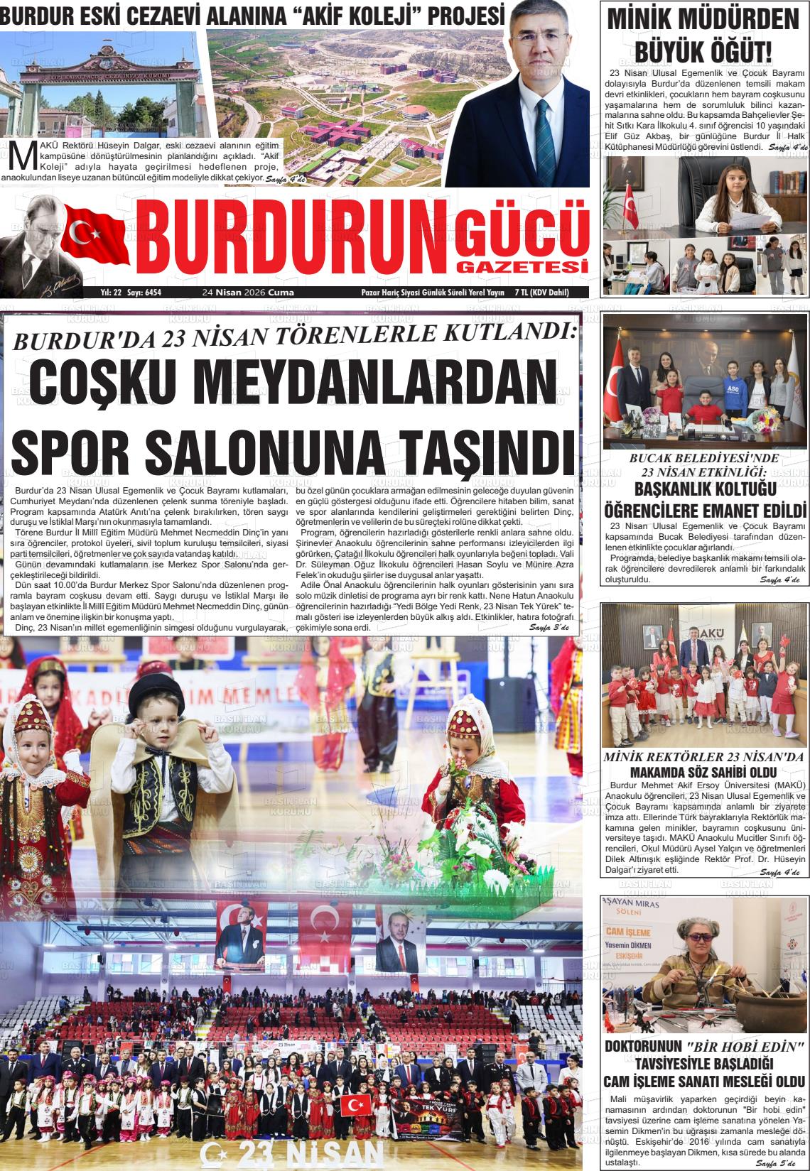 Burdur Yerel Gazeteleri 24 Nisan 2026, Cuma Günü Manşeti