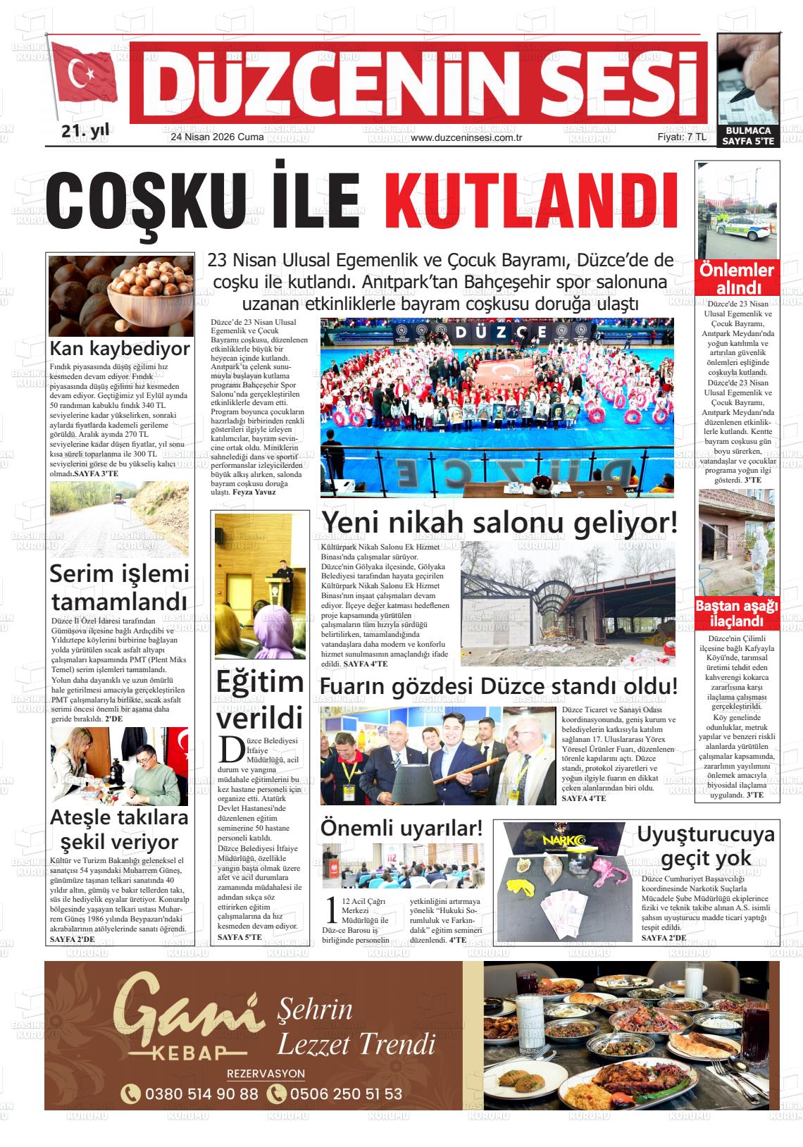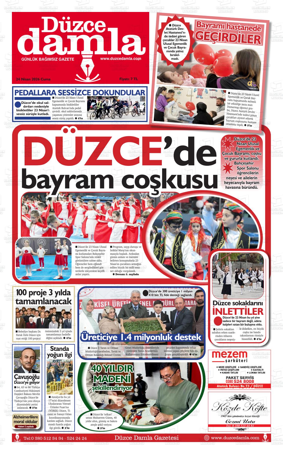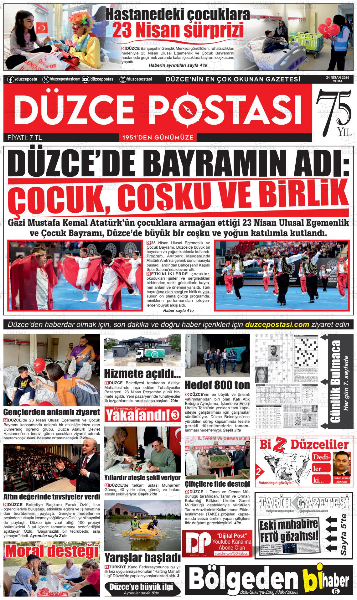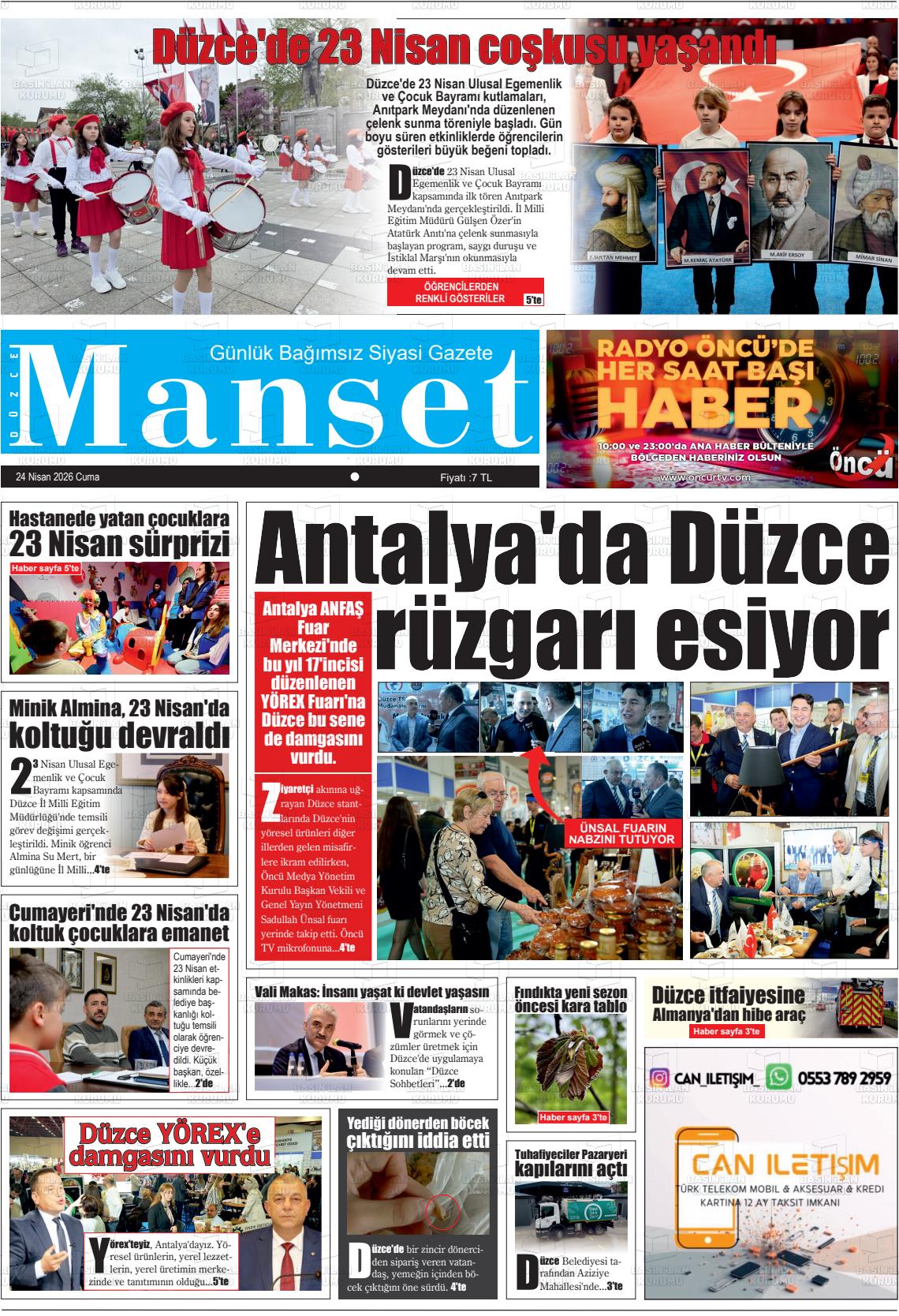 Düzce Yerel Gazeteleri 24 Nisan 2026, Cuma Günü Manşeti