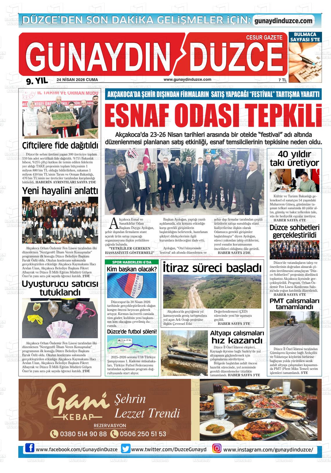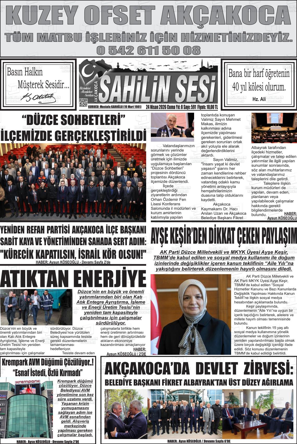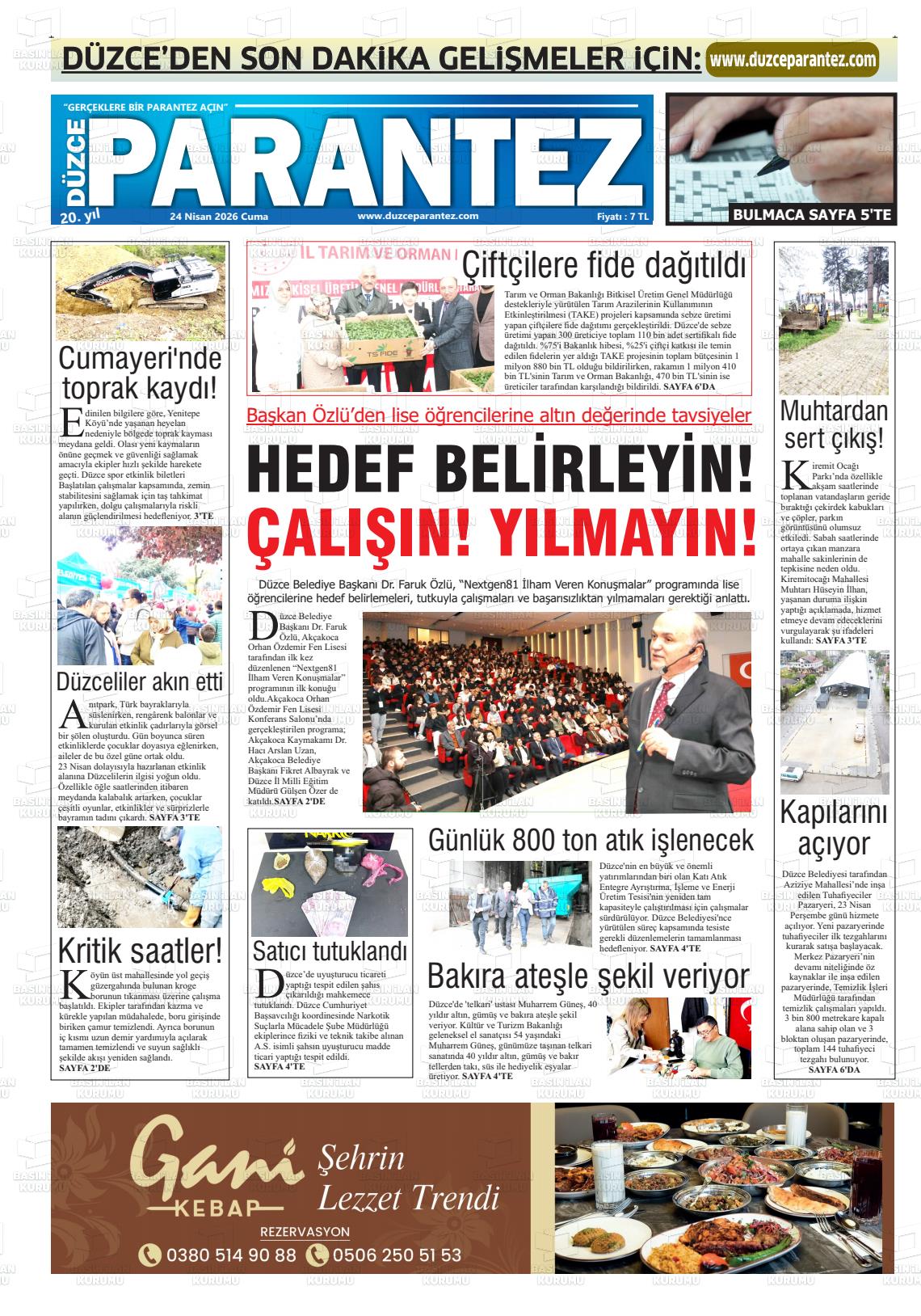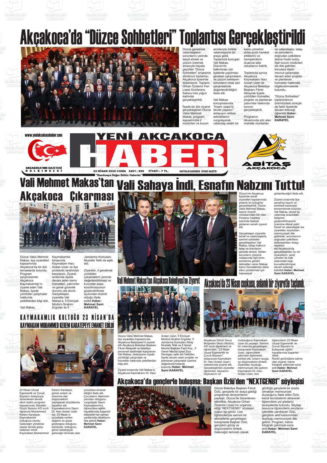 Düzce Yerel Gazeteleri 24 Nisan 2026, Cuma Günü Manşeti