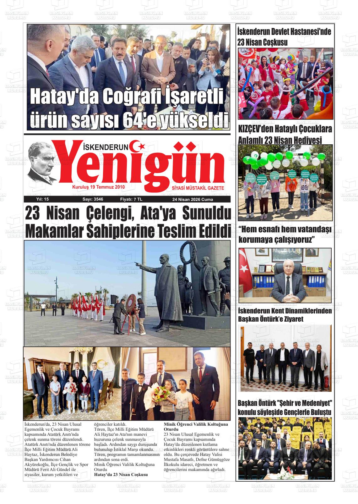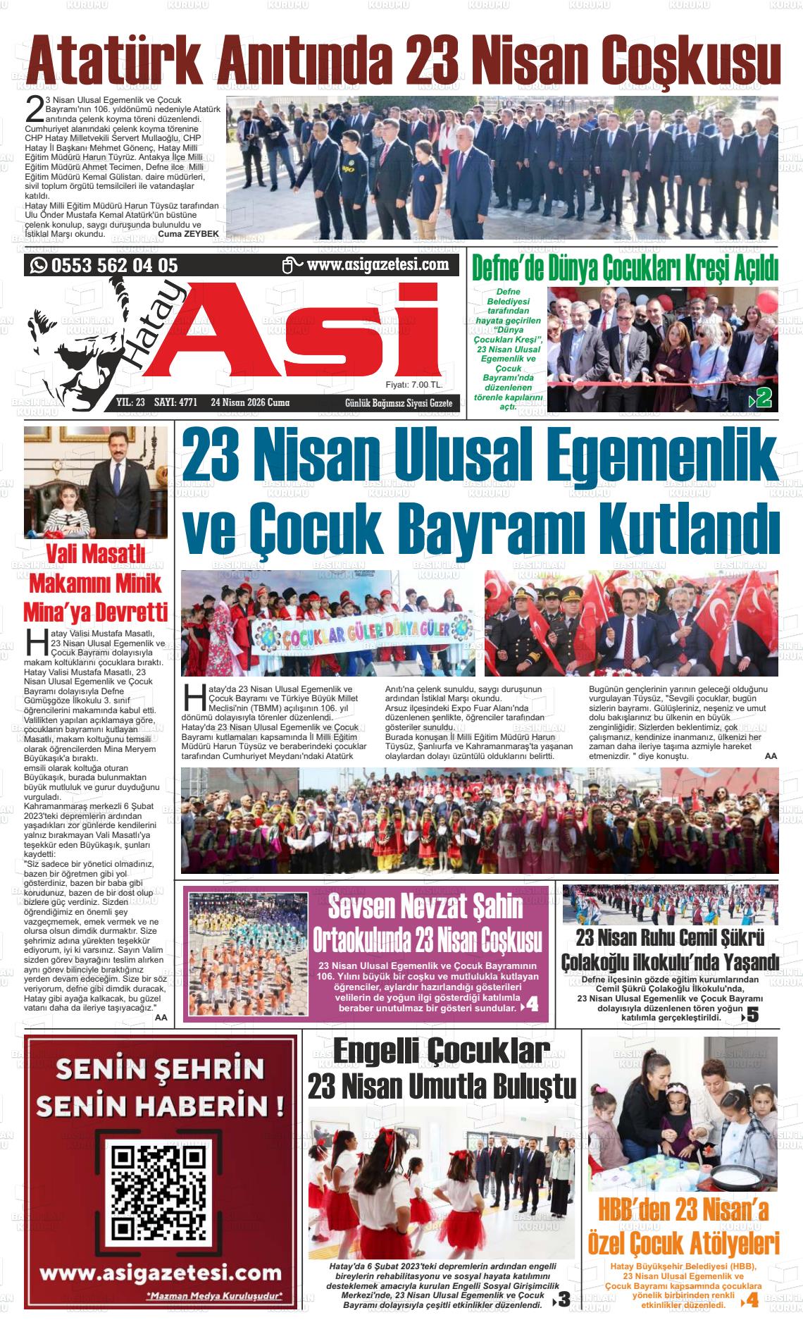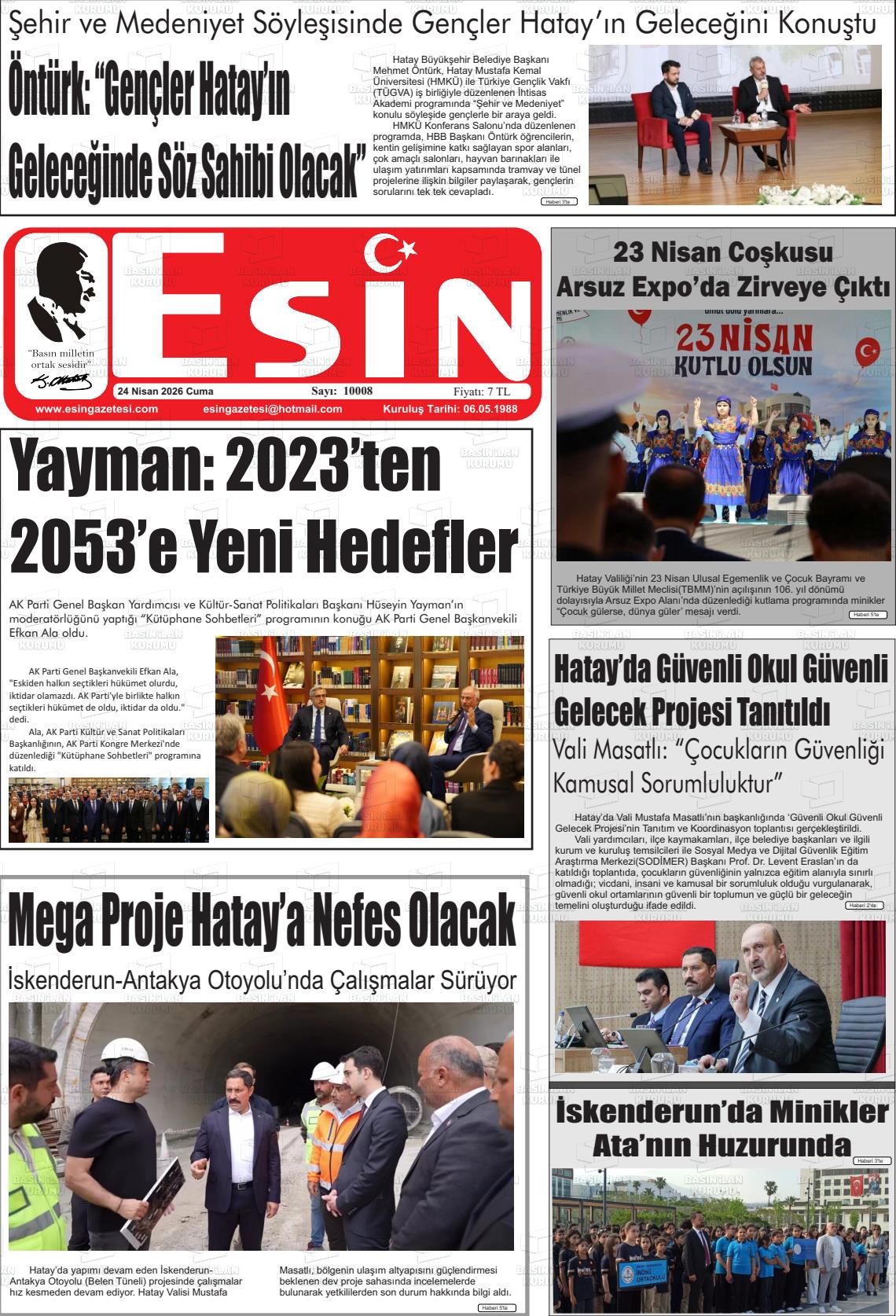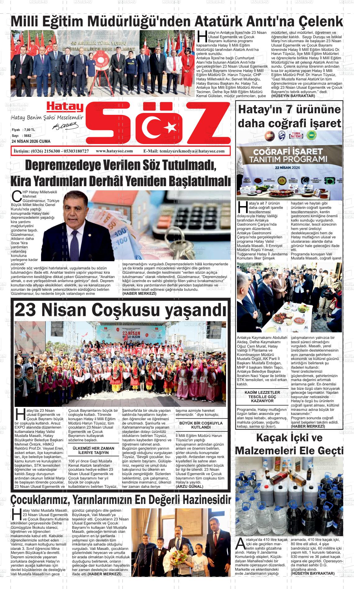Hatay Yerel Gazeteleri 24 Nisan 2026, Cuma Günü Manşeti