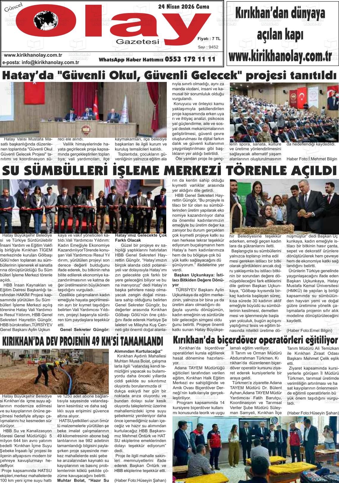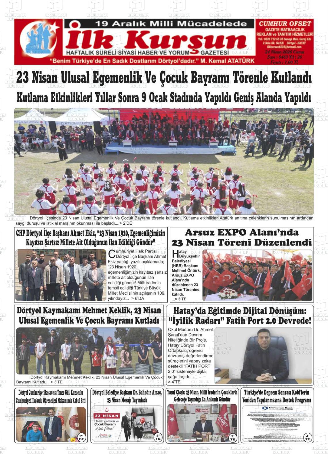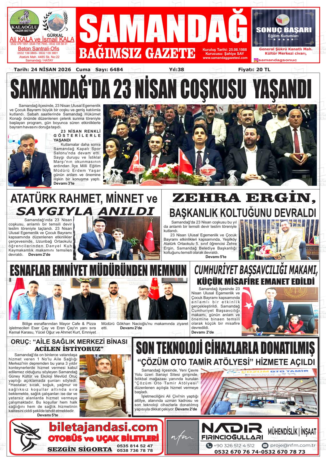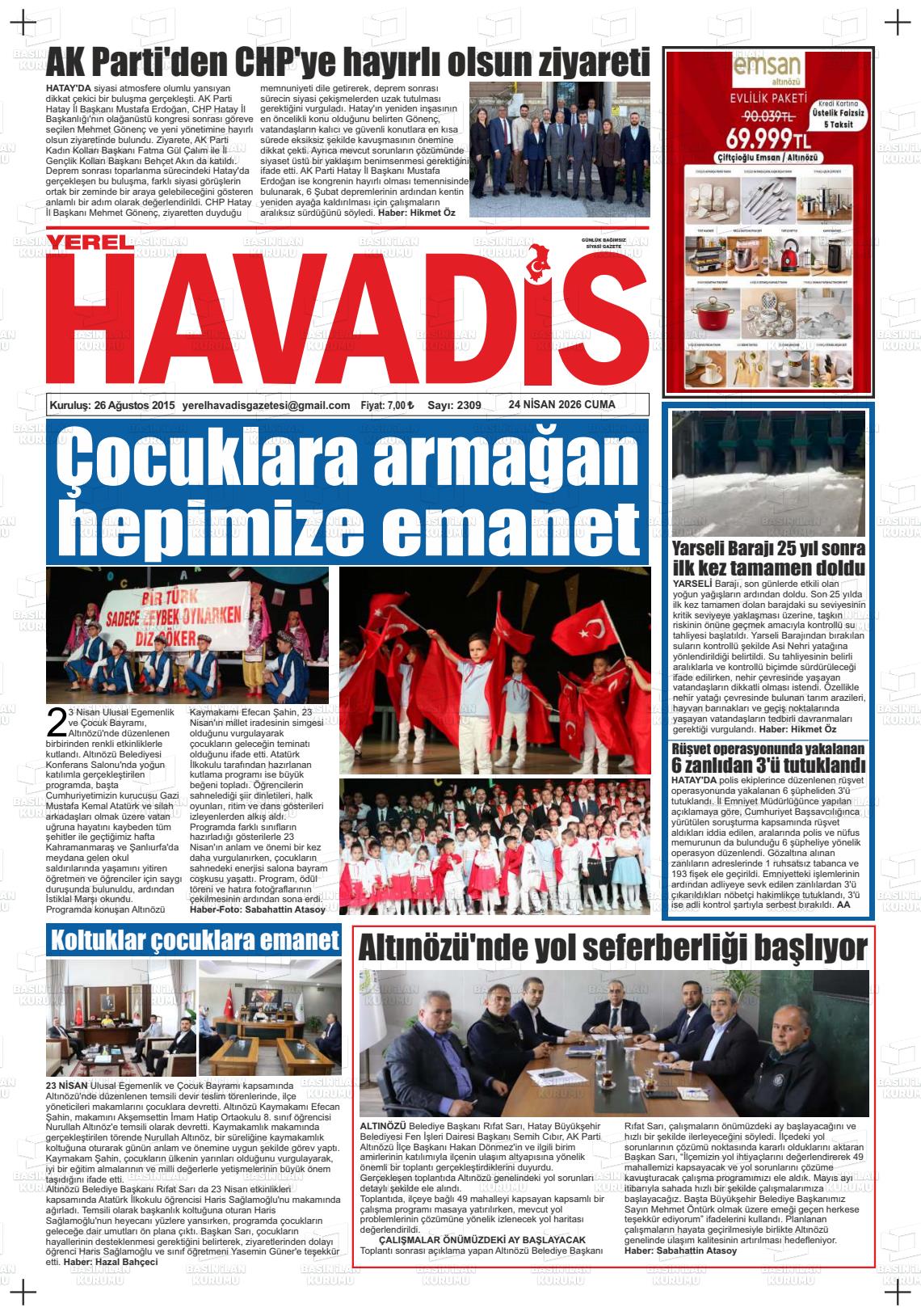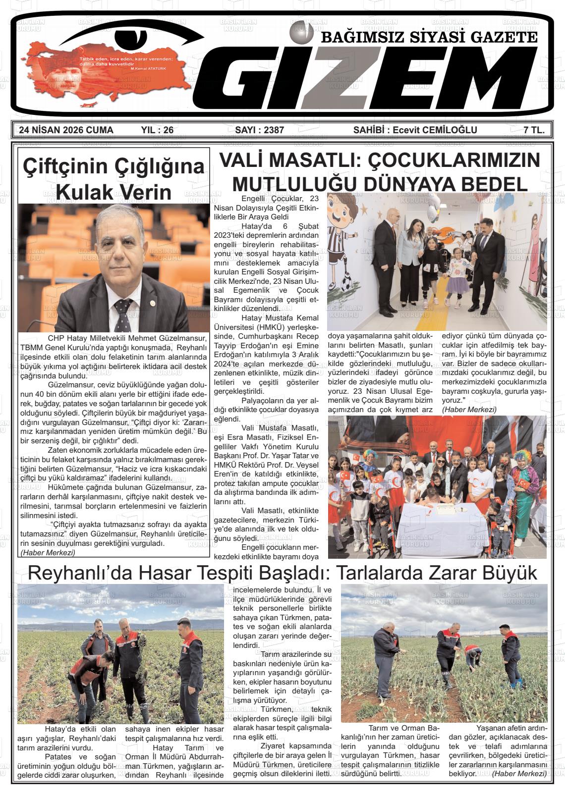 Hatay Yerel Gazeteleri 24 Nisan 2026, Cuma Günü Manşeti