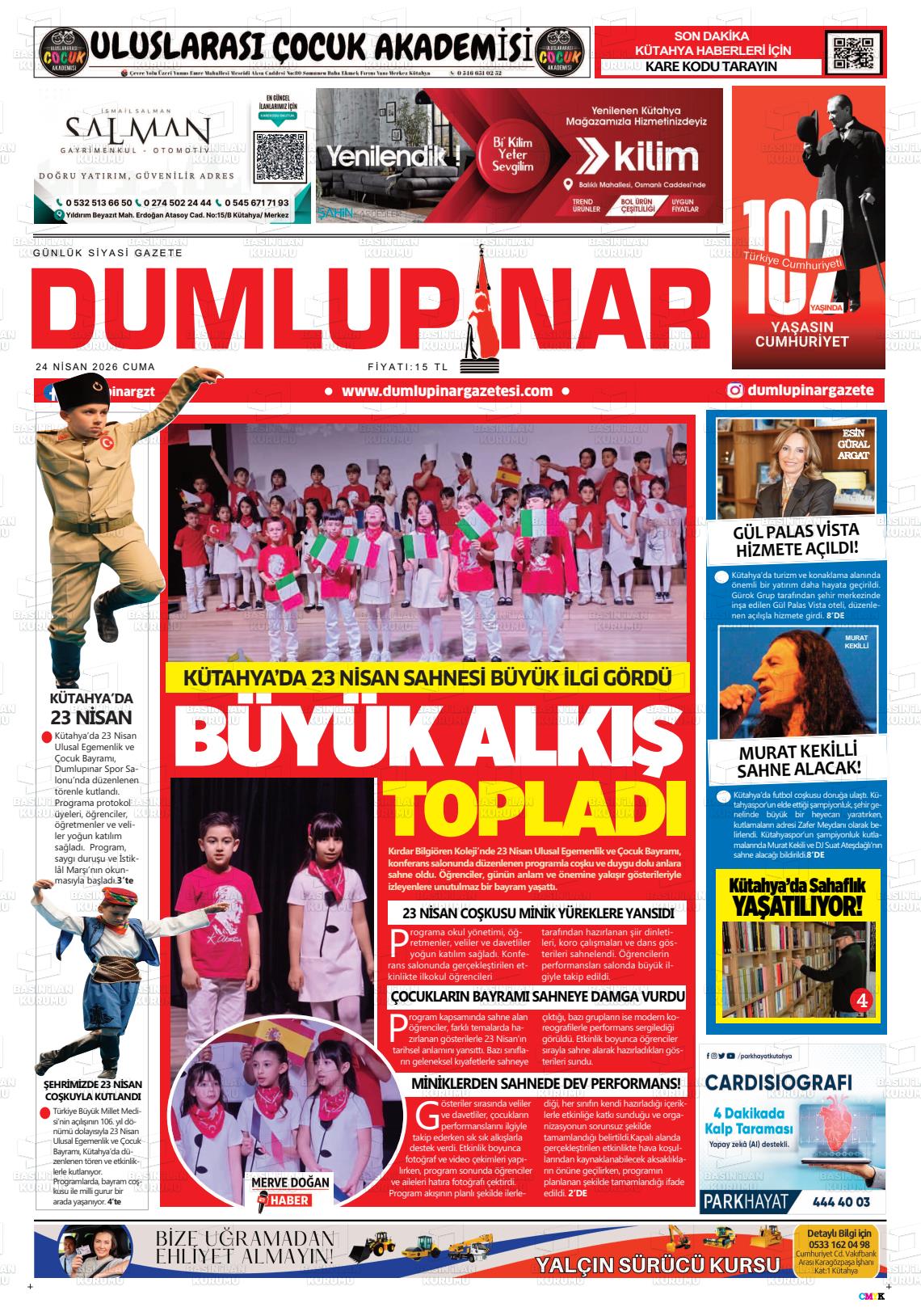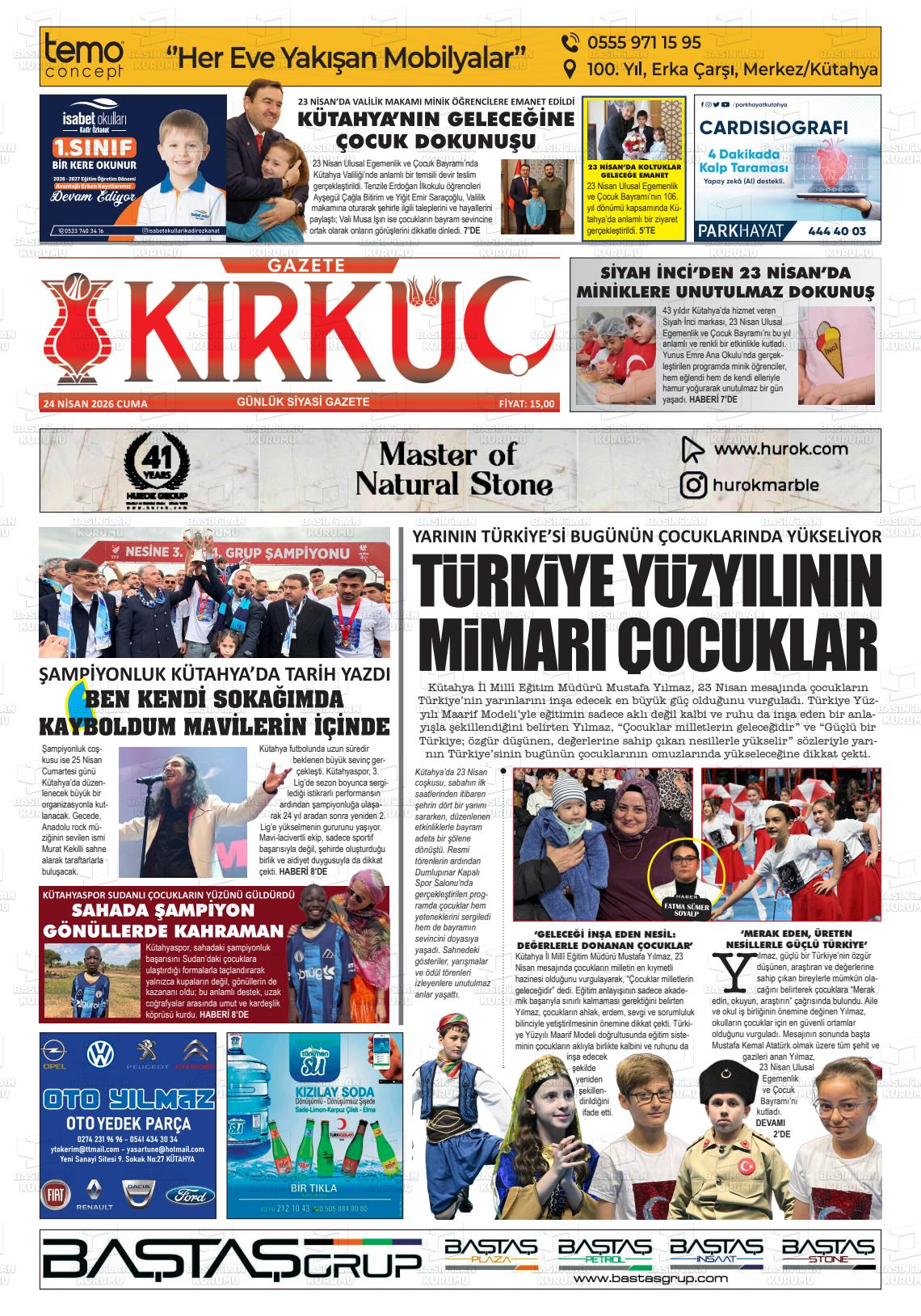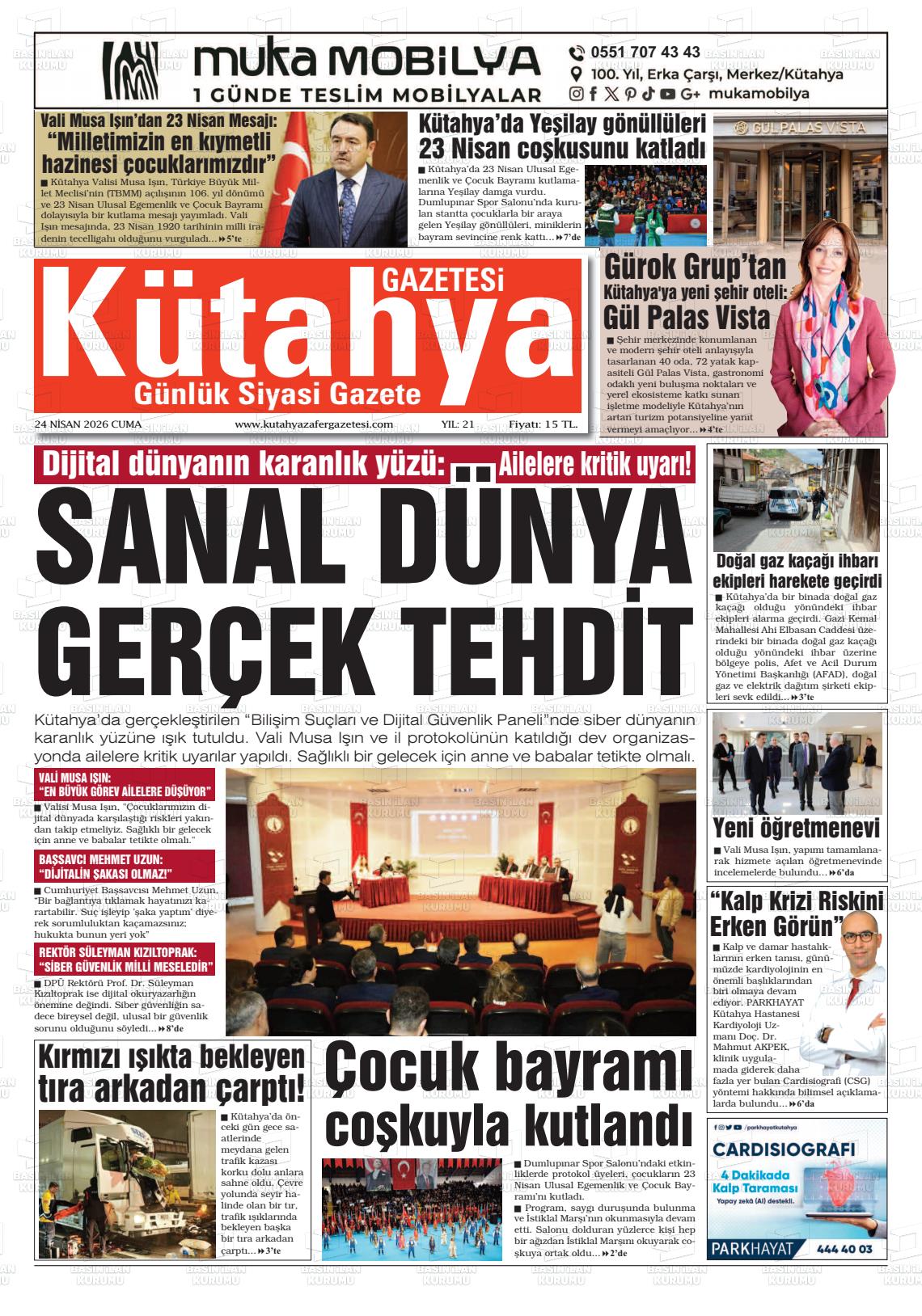Kütahya Yerel Gazeteleri 24 Nisan 2026, Cuma Günü Manşeti