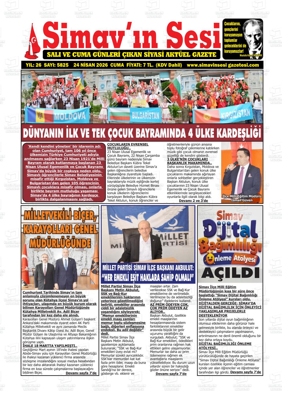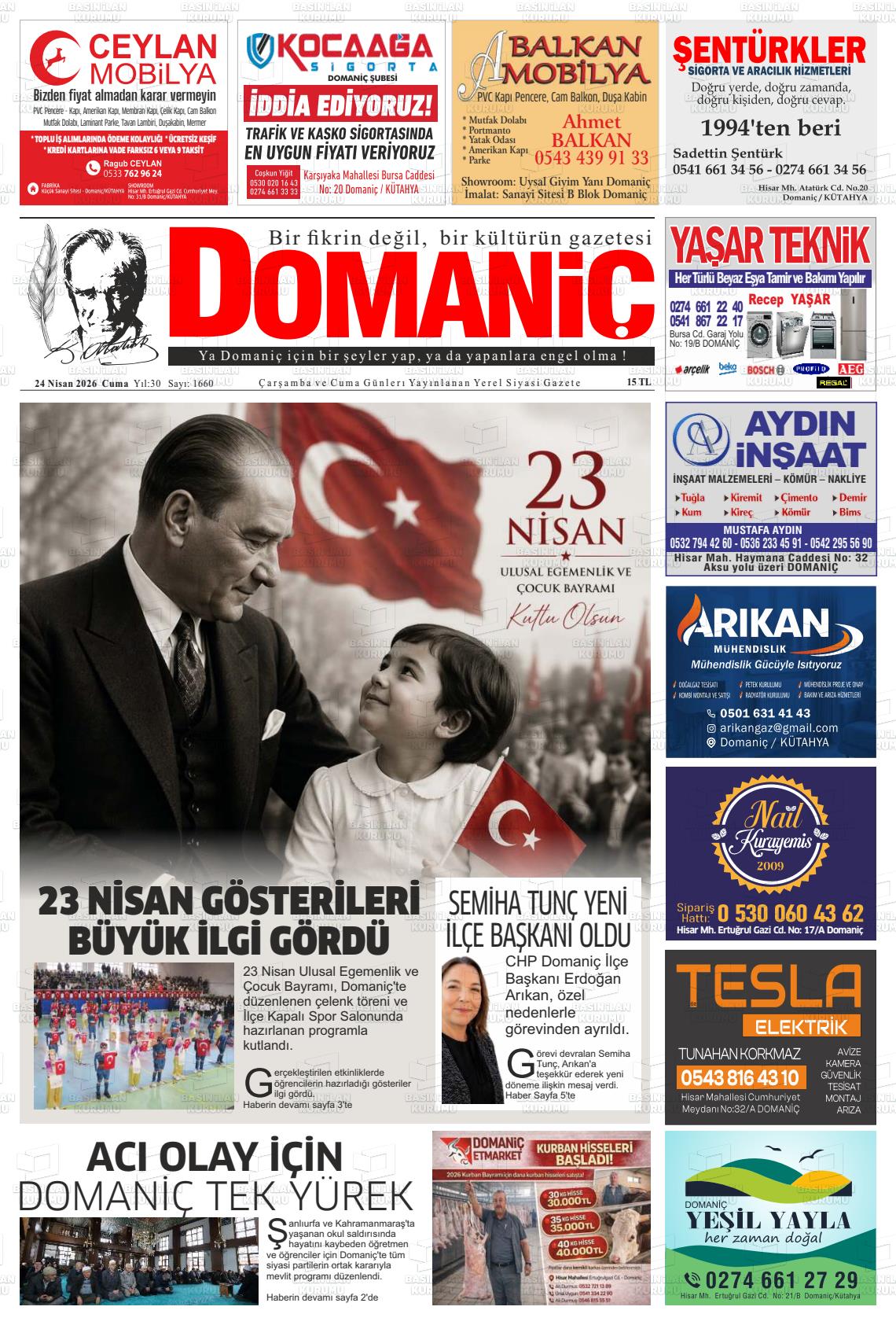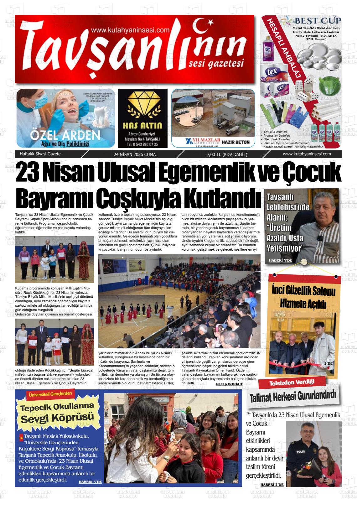 Kütahya Yerel Gazeteleri 24 Nisan 2026, Cuma Günü Manşeti