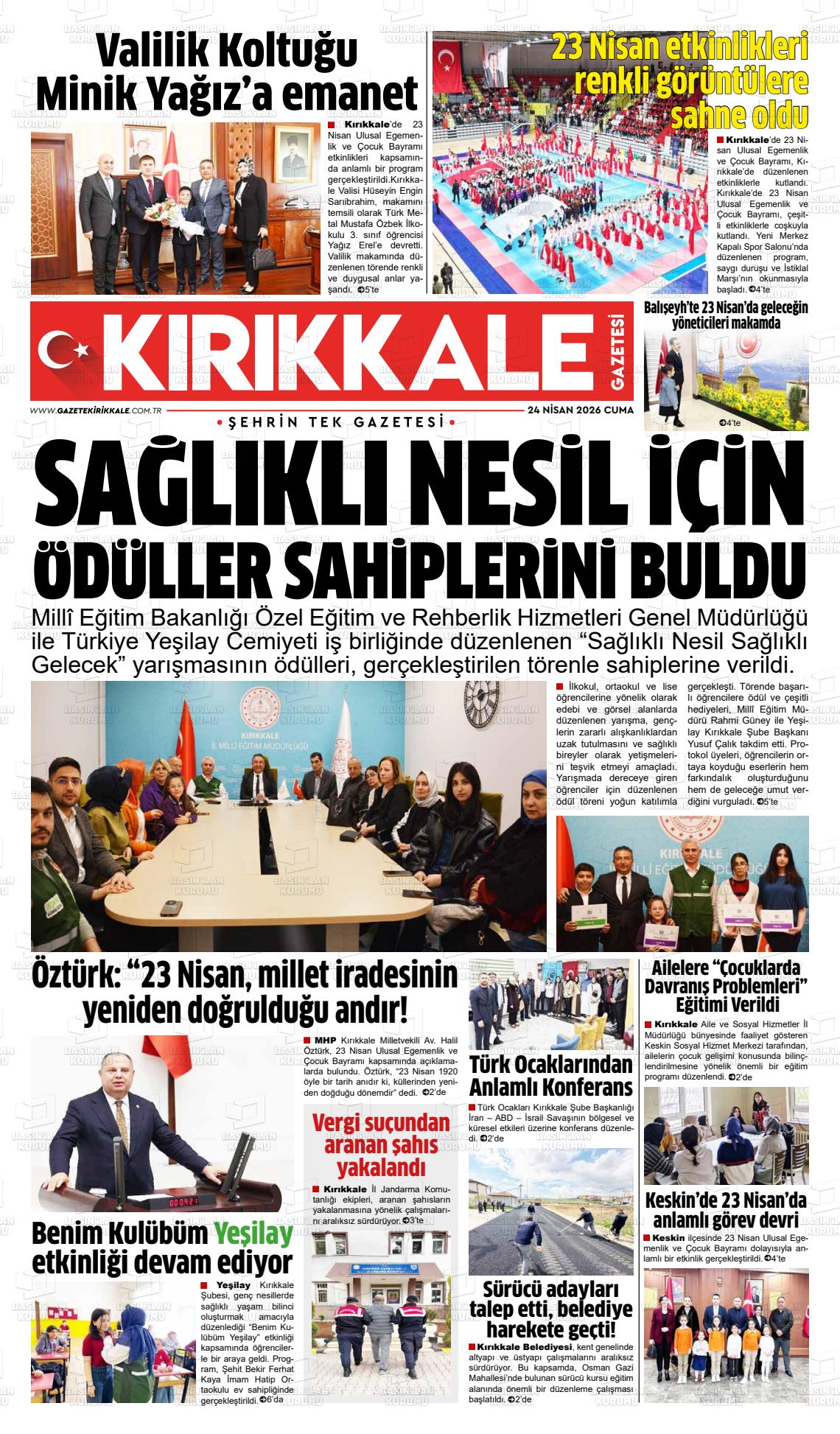 Kırıkkale Yerel Gazeteleri 24 Nisan 2026, Cuma Günü Manşeti