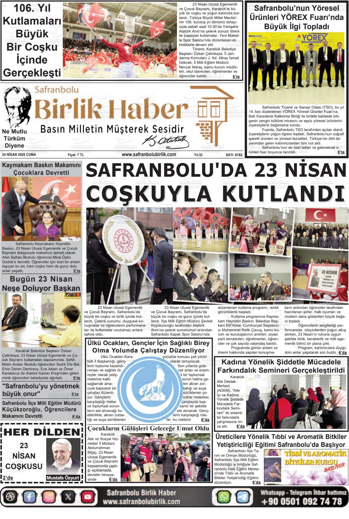 Karabük Yerel Gazeteleri 24 Nisan 2026, Cuma Günü Manşeti