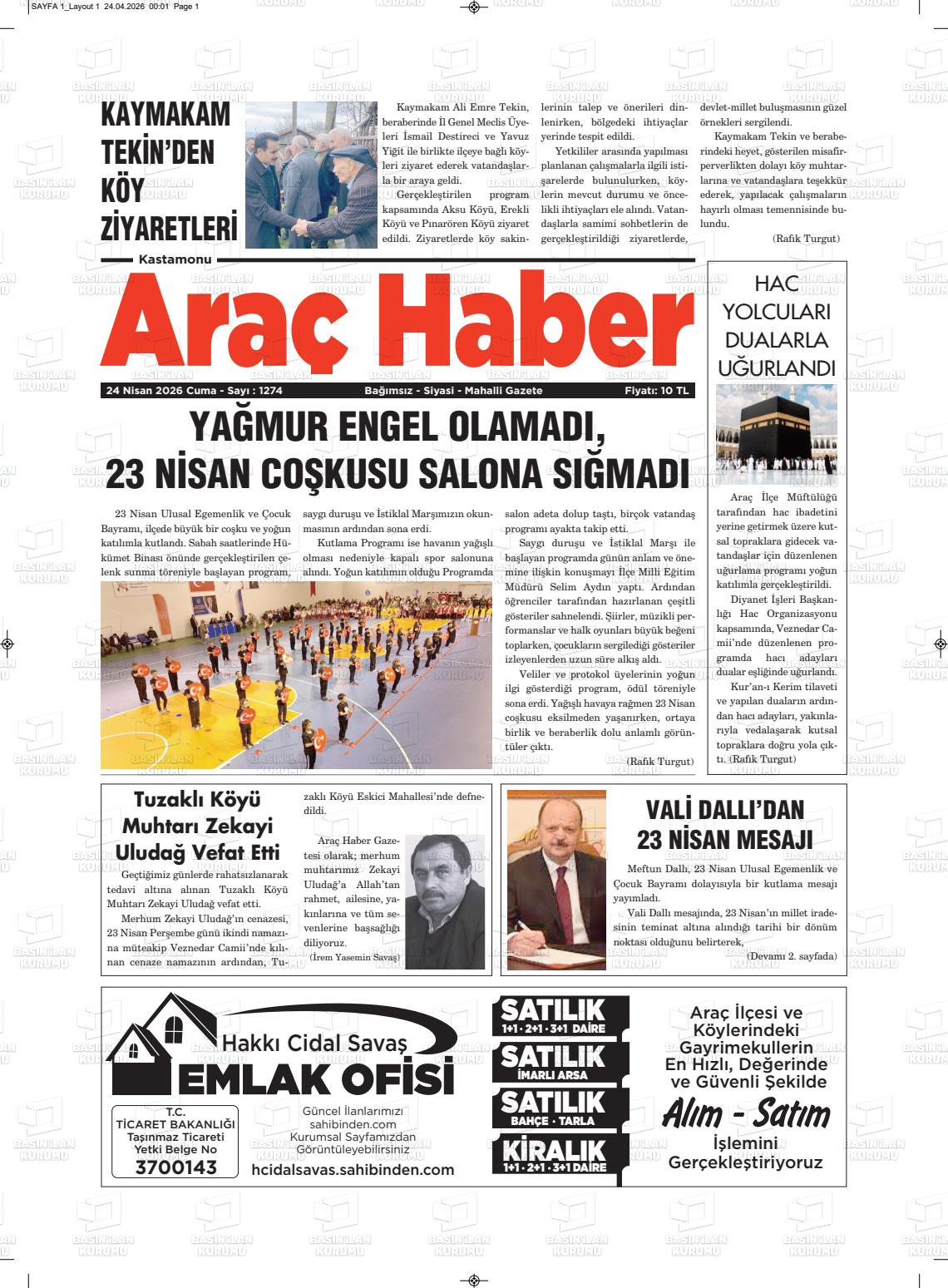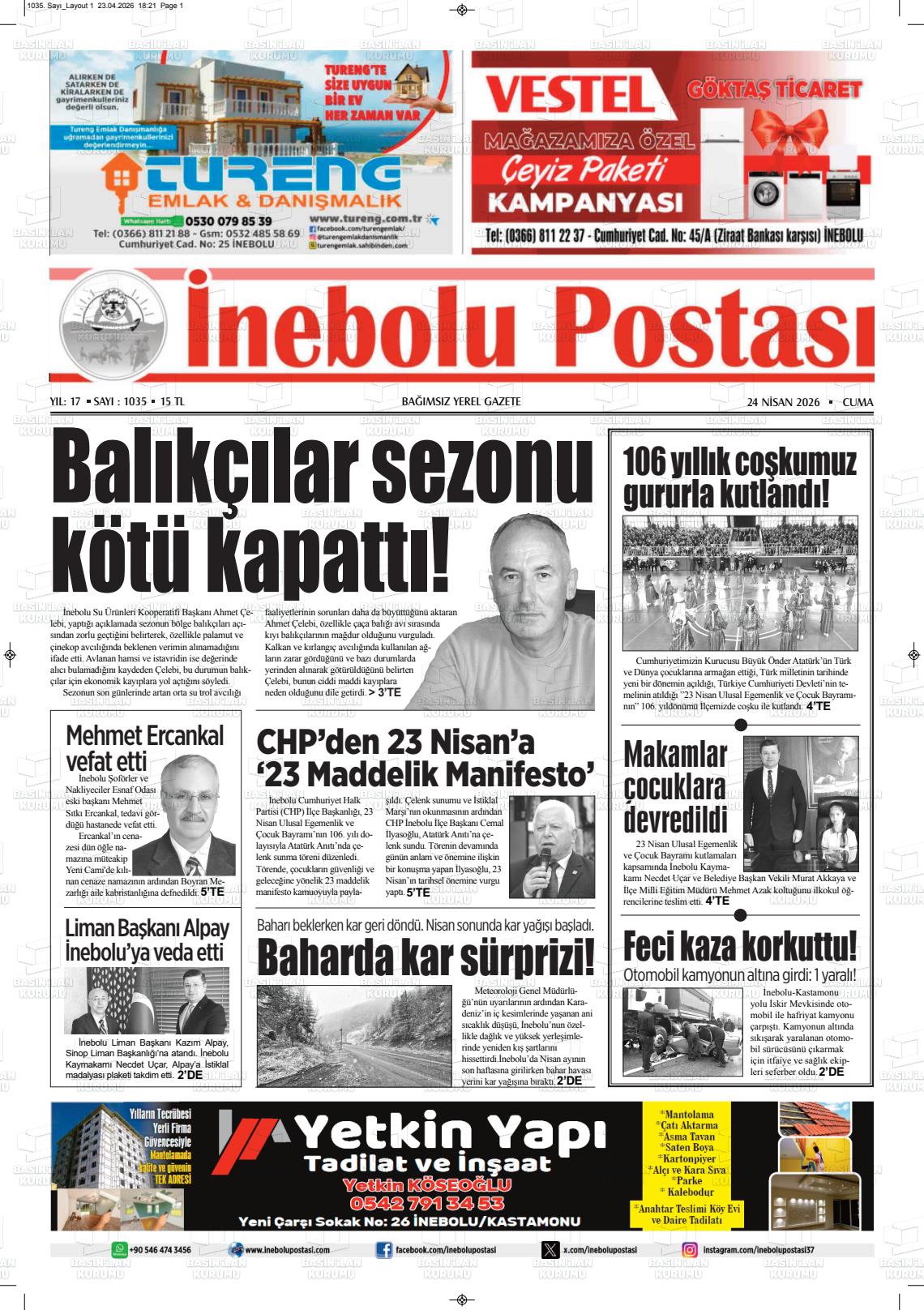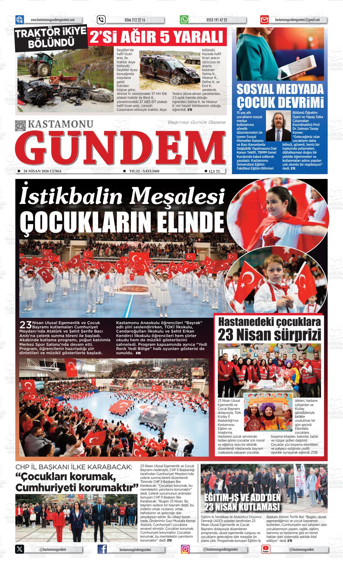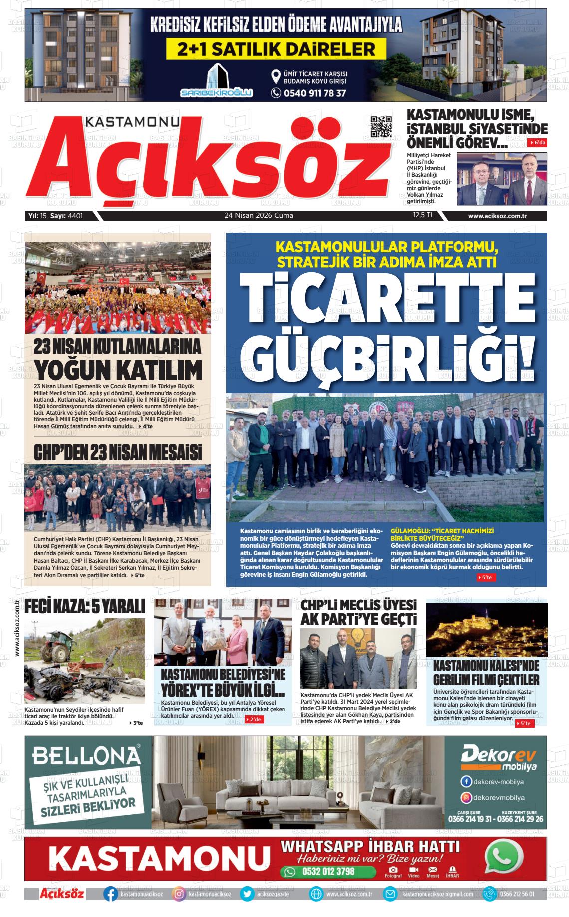 Kastamonu Yerel Gazeteleri 24 Nisan 2026, Cuma Günü Manşeti