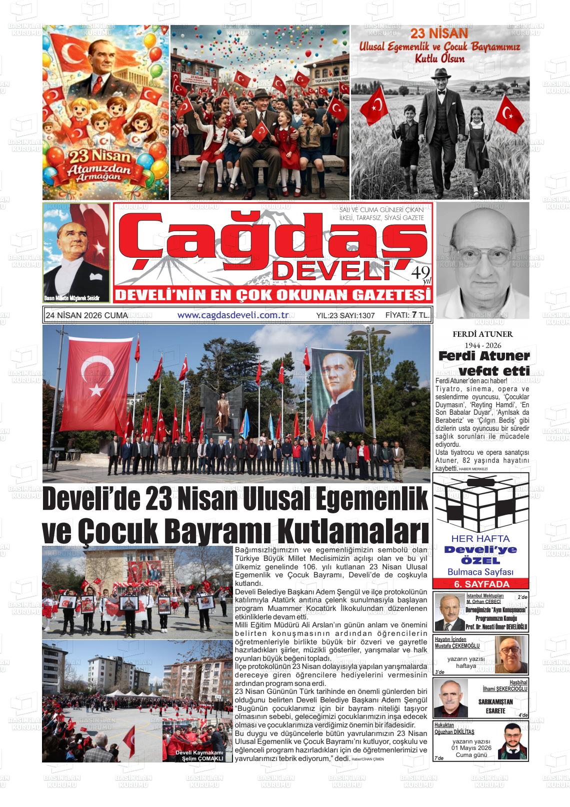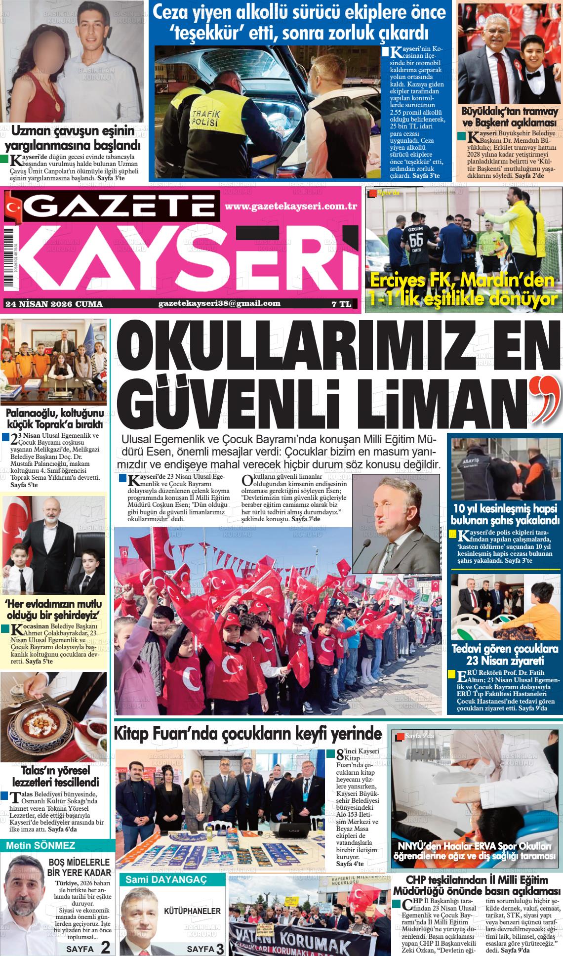 Kayserİ Yerel Gazeteleri 24 Nisan 2026, Cuma Günü Manşeti