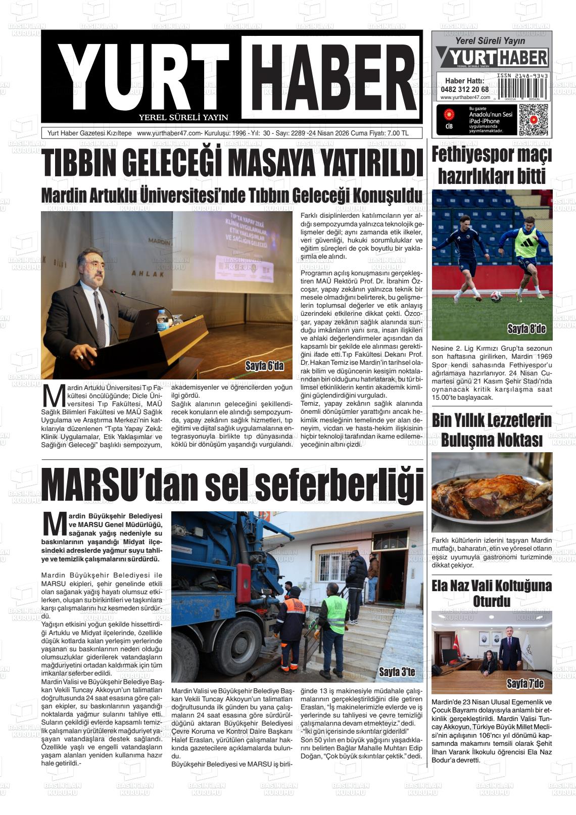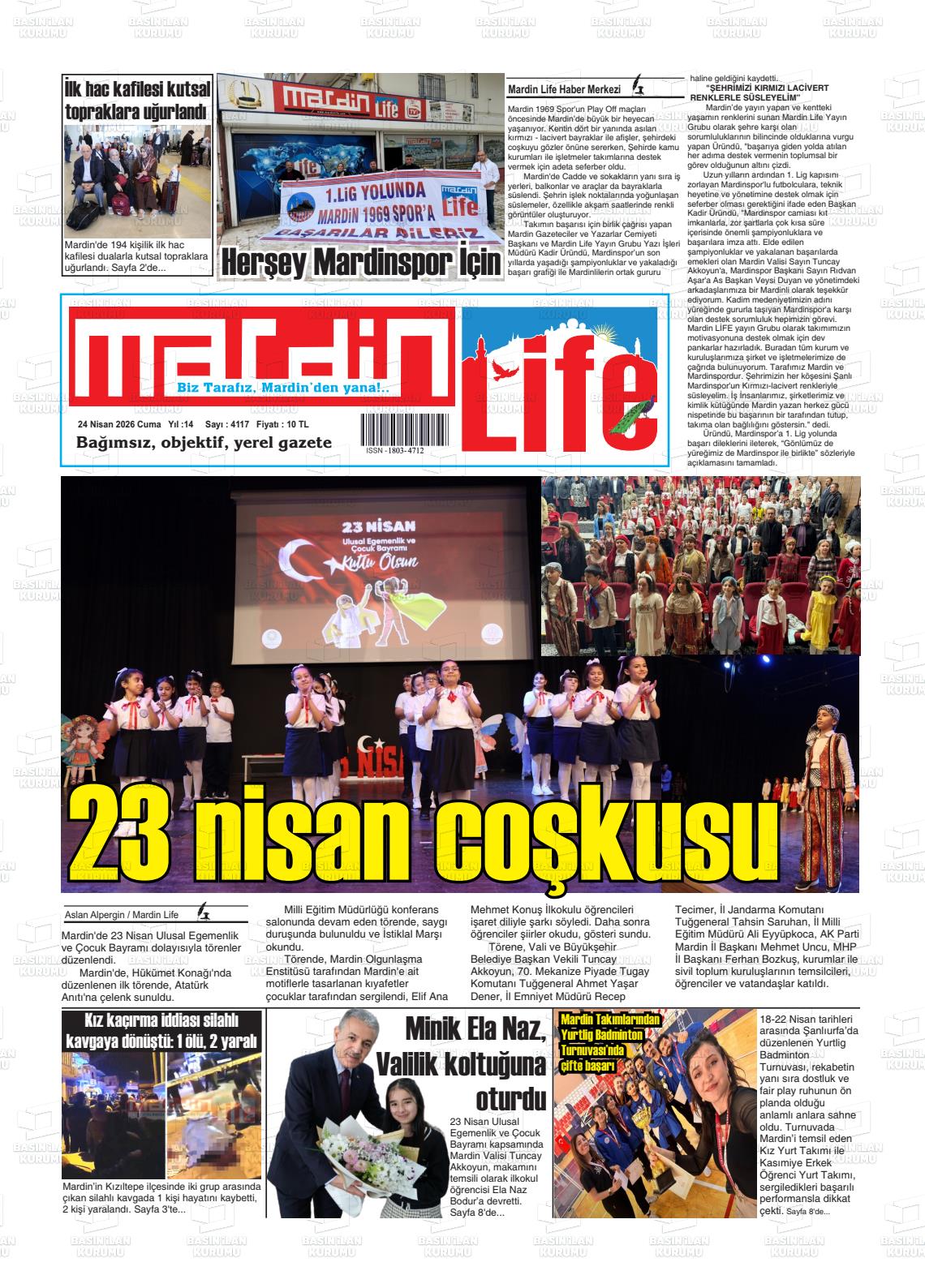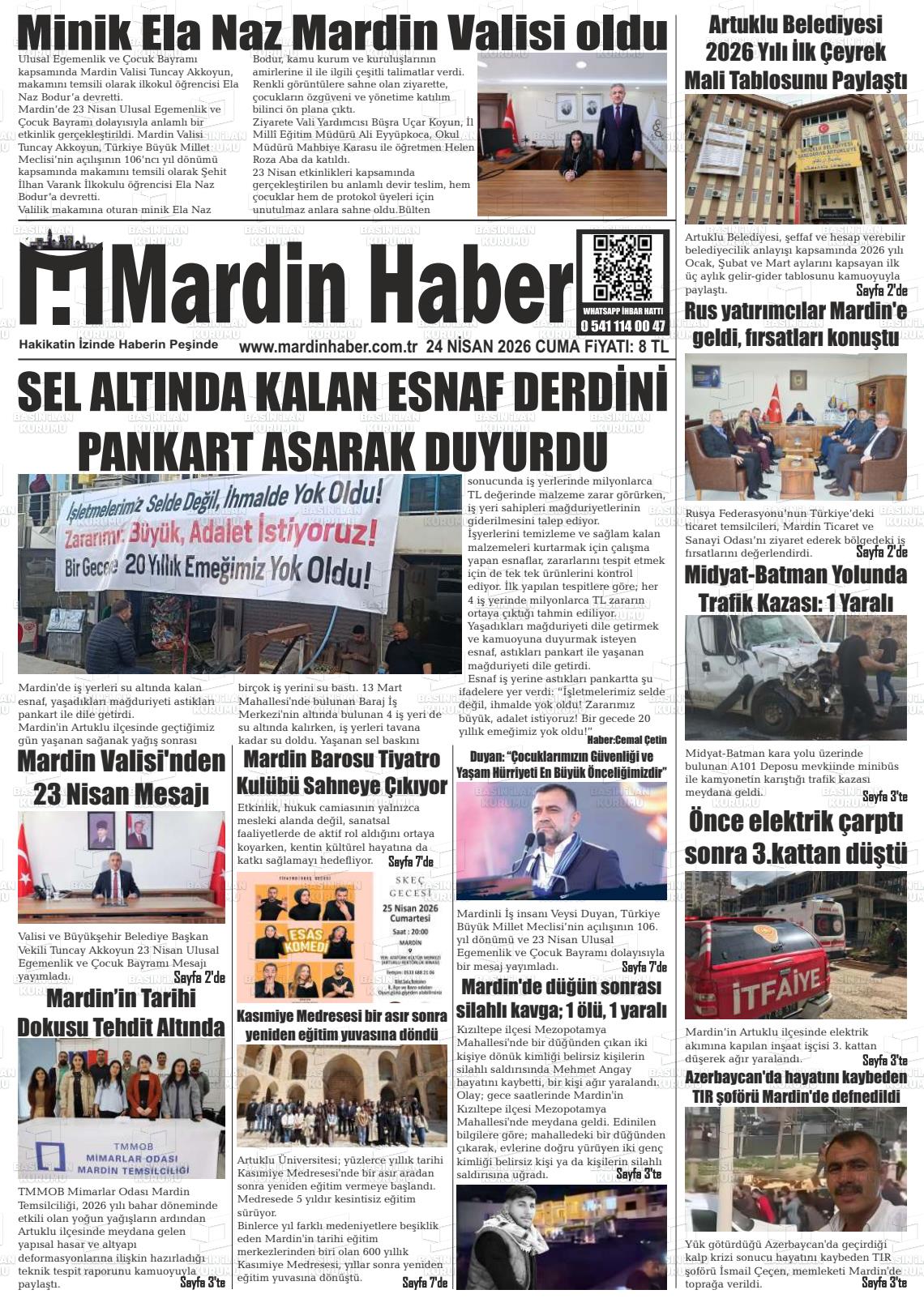 Mardİn Yerel Gazeteleri 24 Nisan 2026, Cuma Günü Manşeti