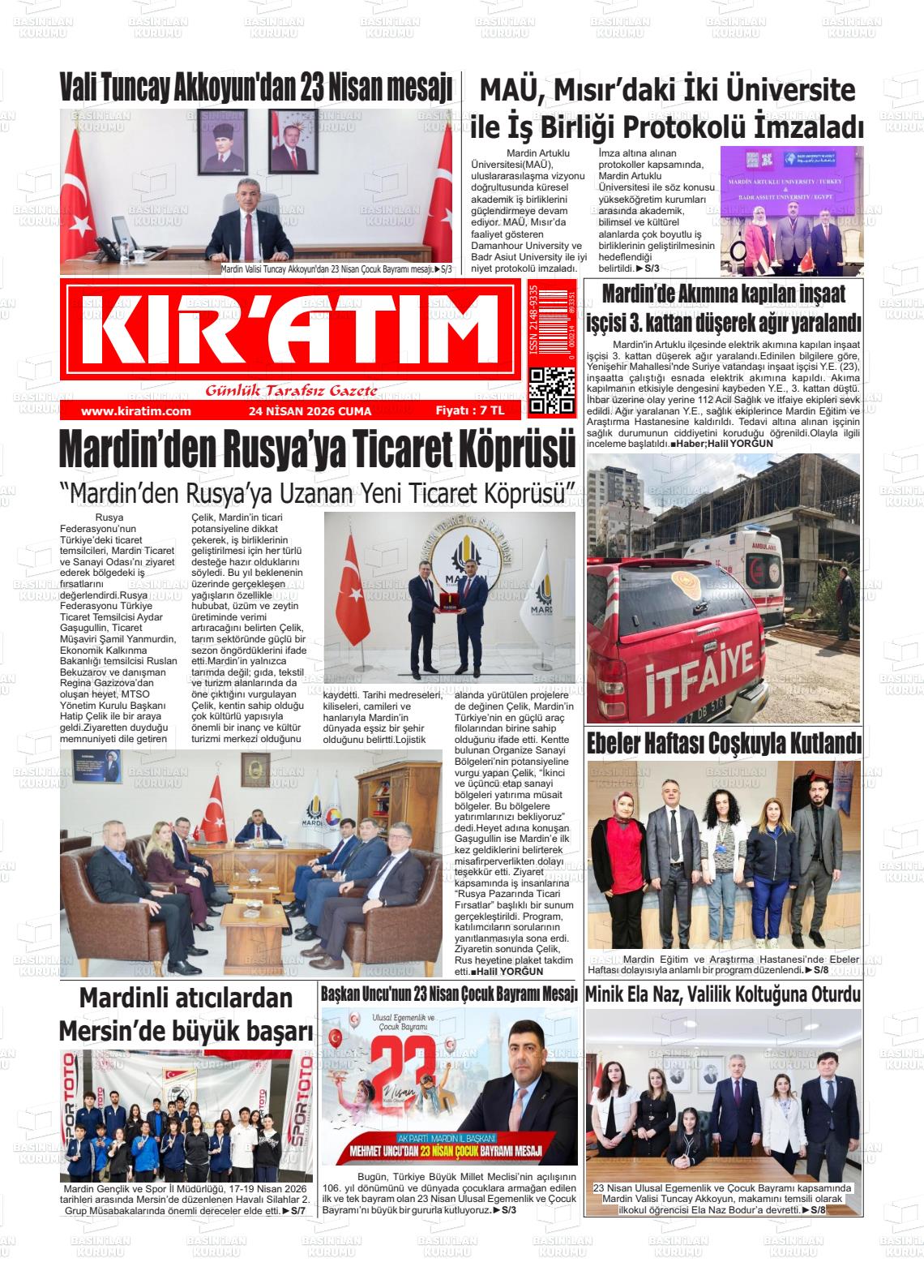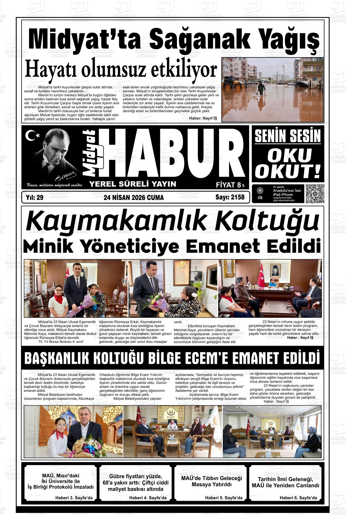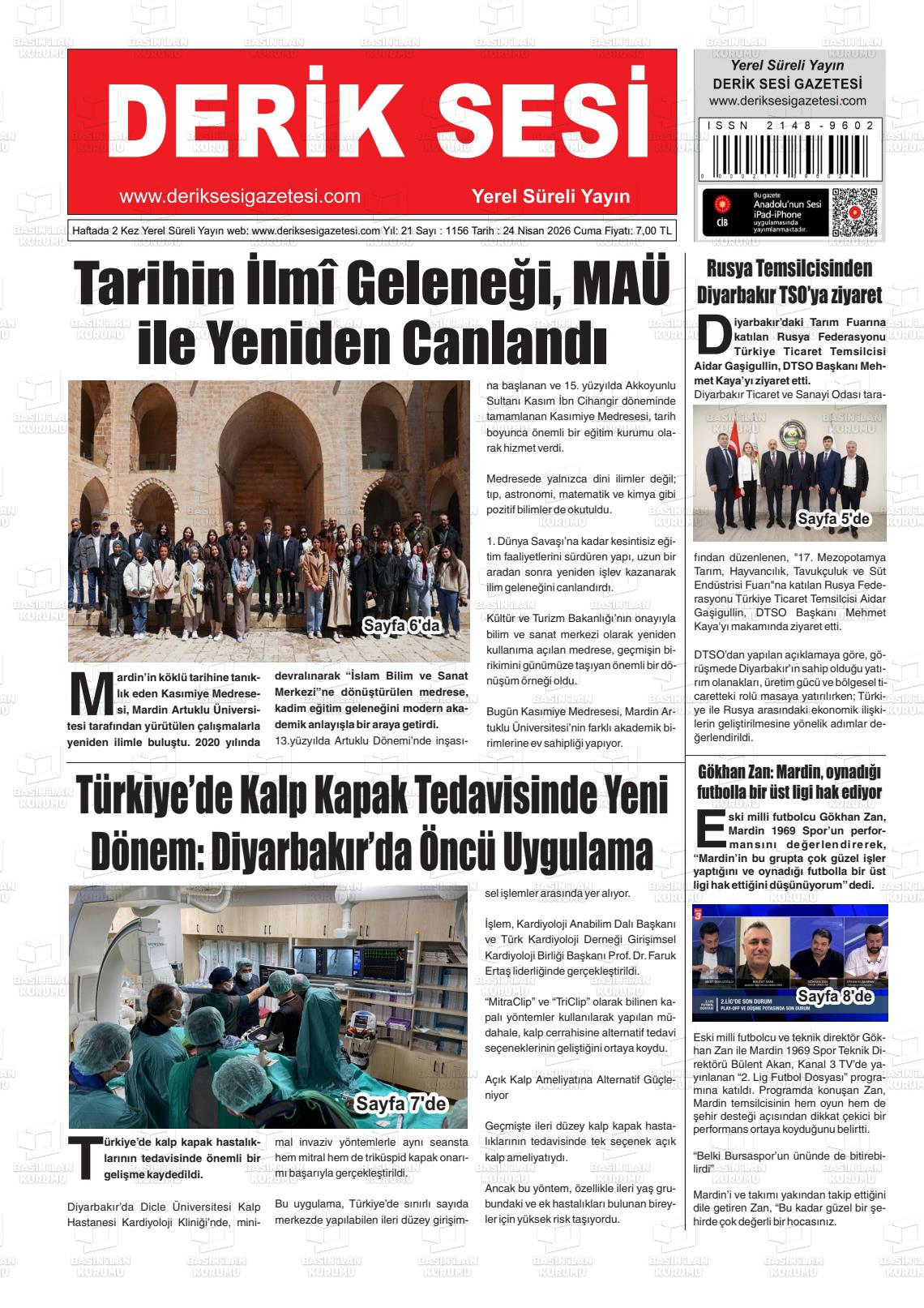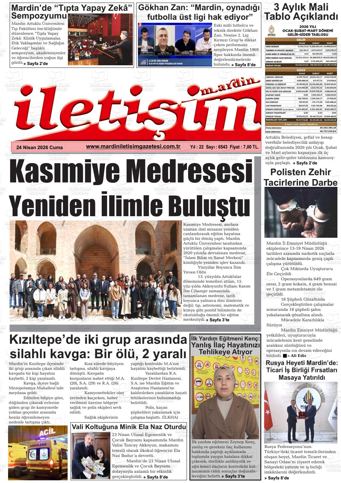 Mardİn Yerel Gazeteleri 24 Nisan 2026, Cuma Günü Manşeti