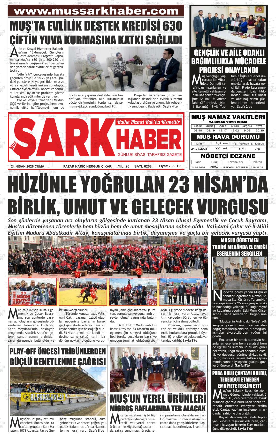 Muş Yerel Gazeteleri 24 Nisan 2026, Cuma Günü Manşeti