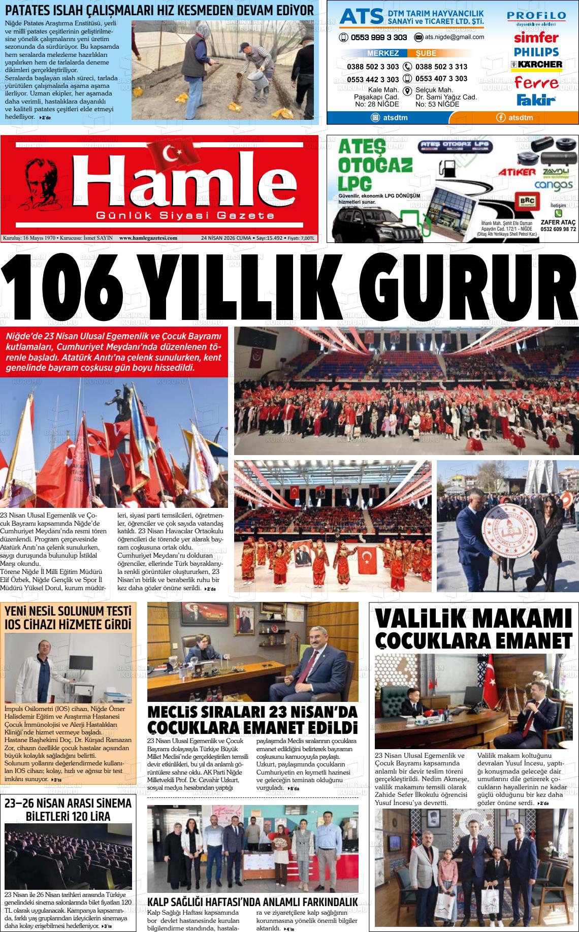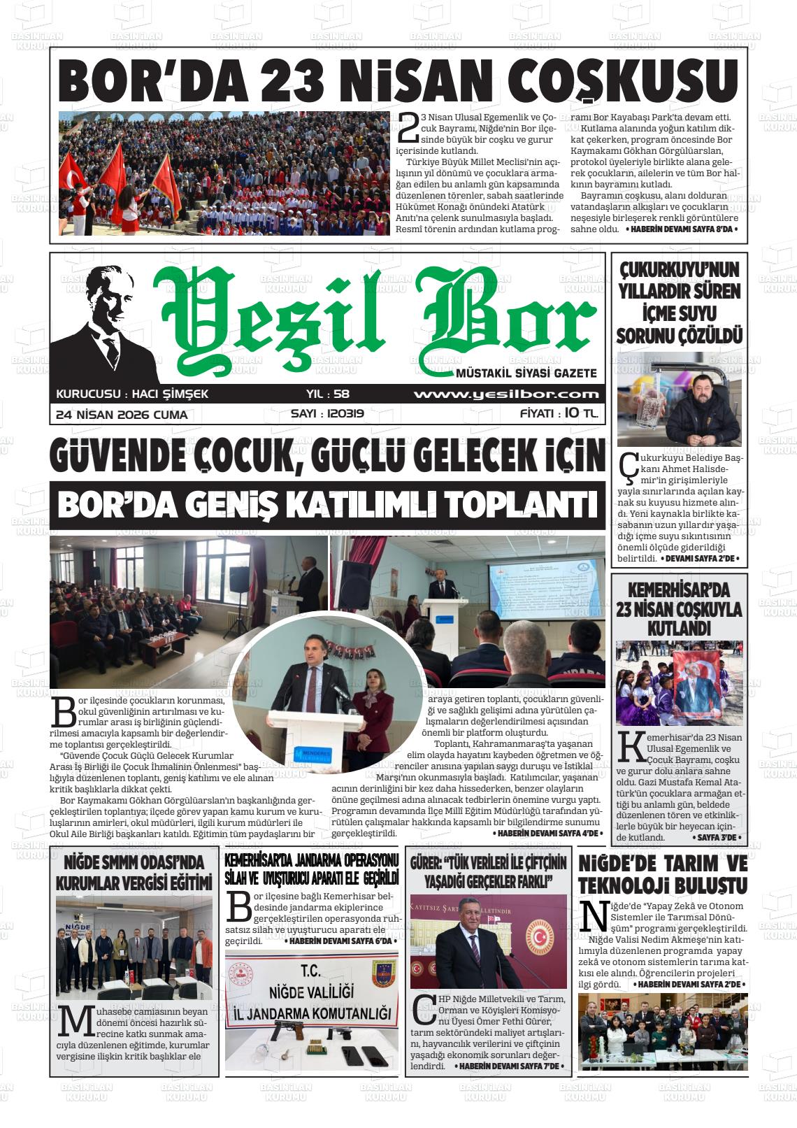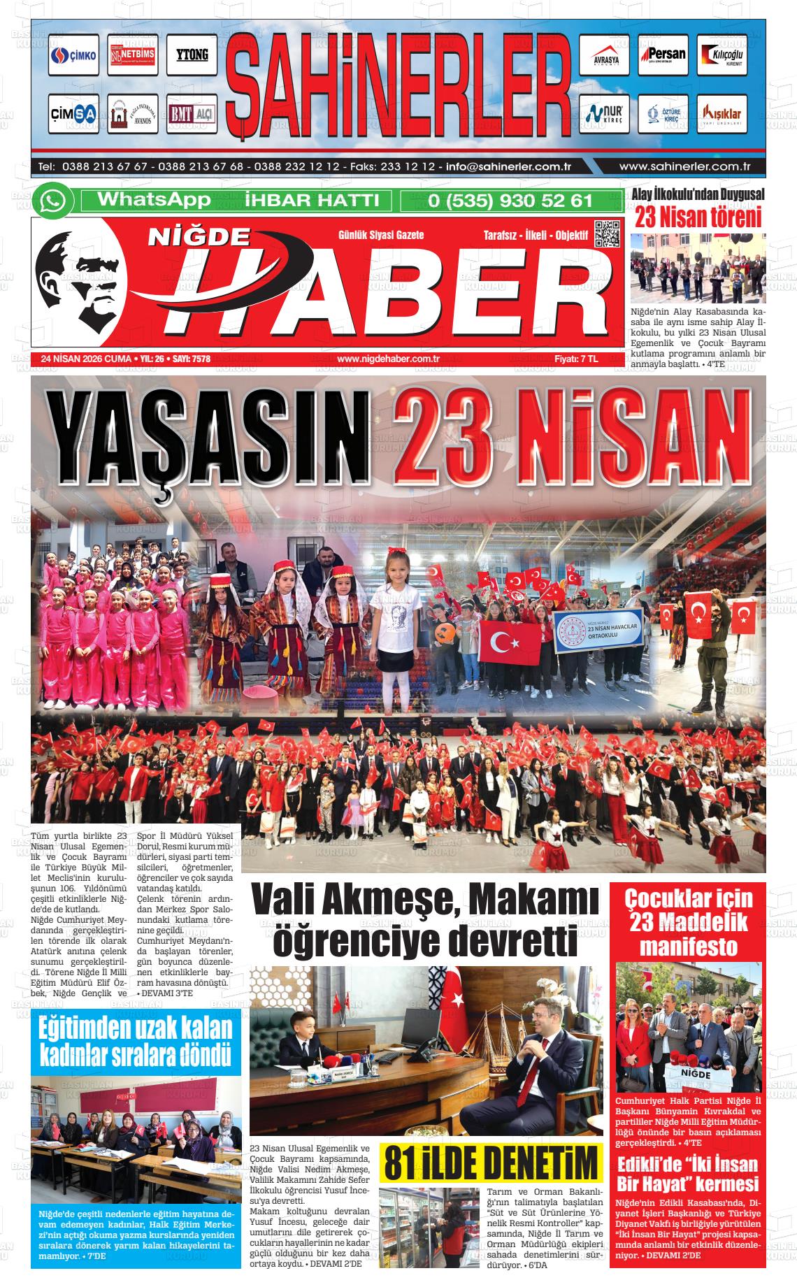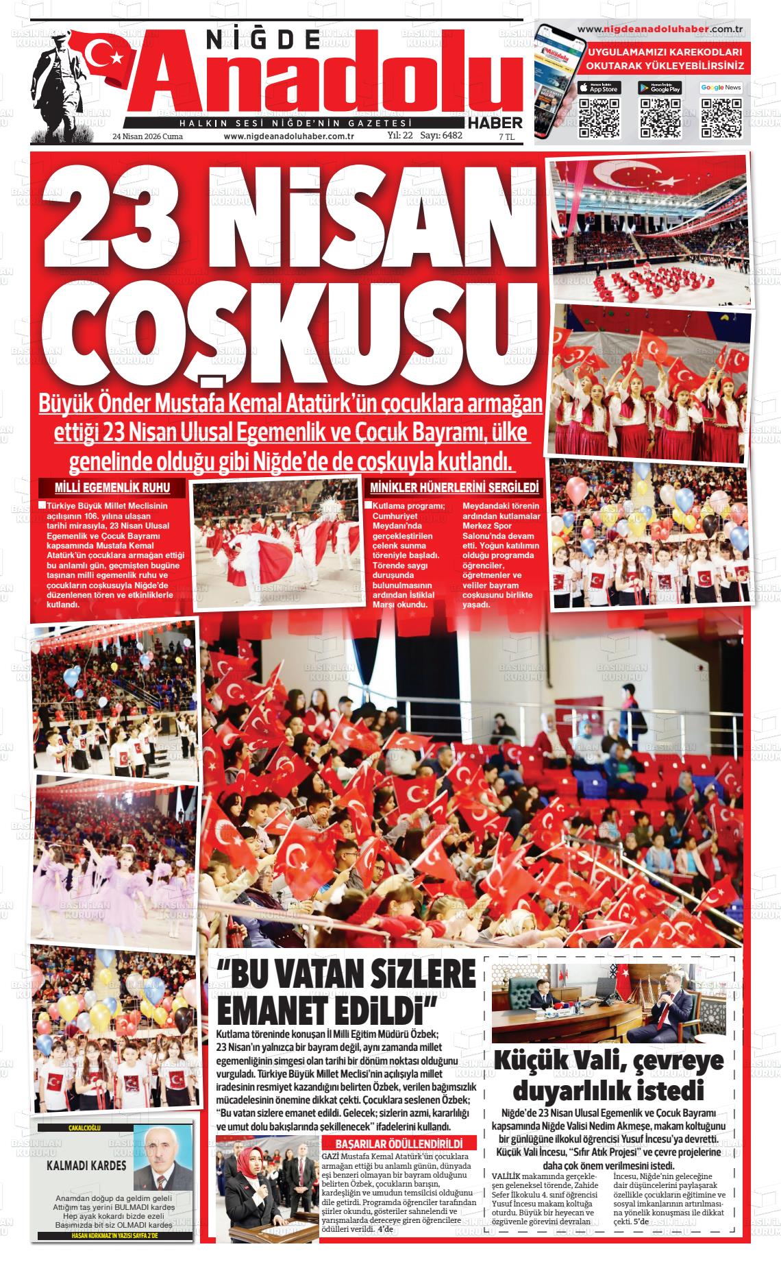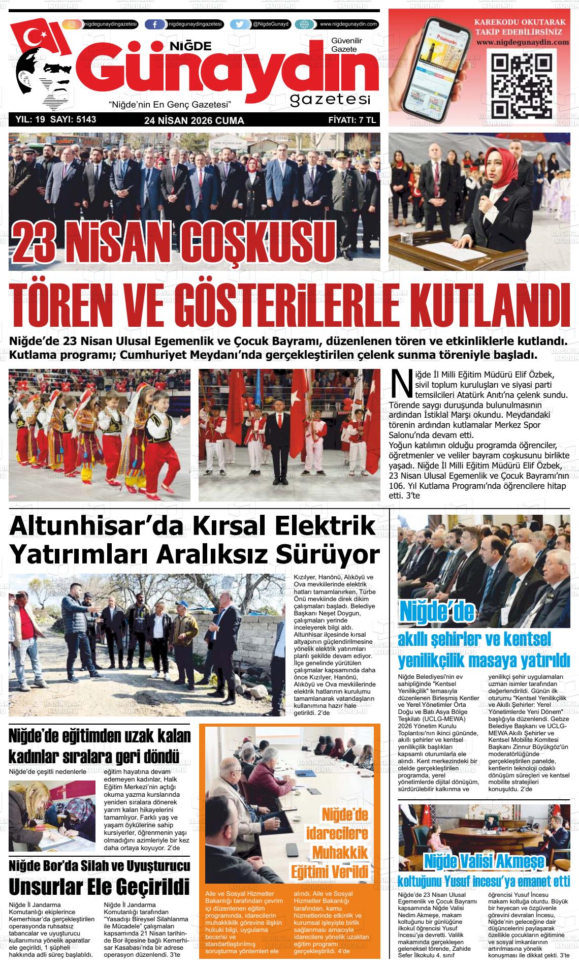 Nİğde Yerel Gazeteleri 24 Nisan 2026, Cuma Günü Manşeti