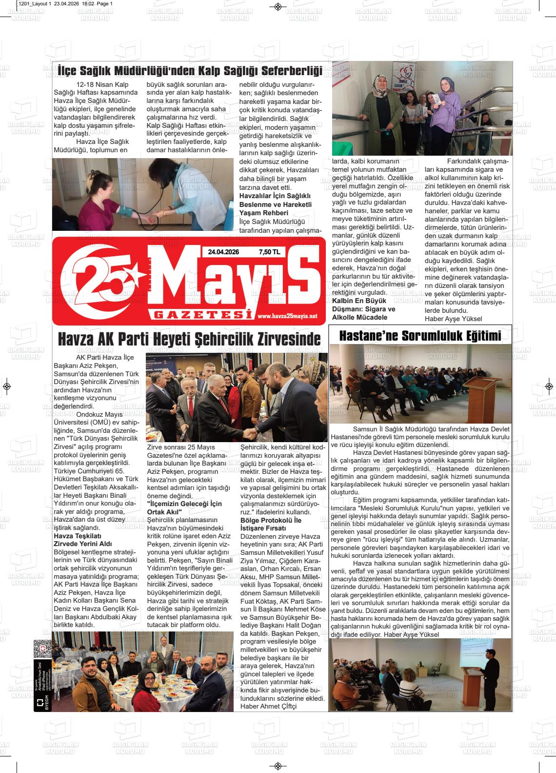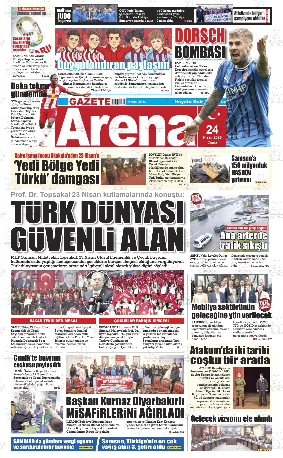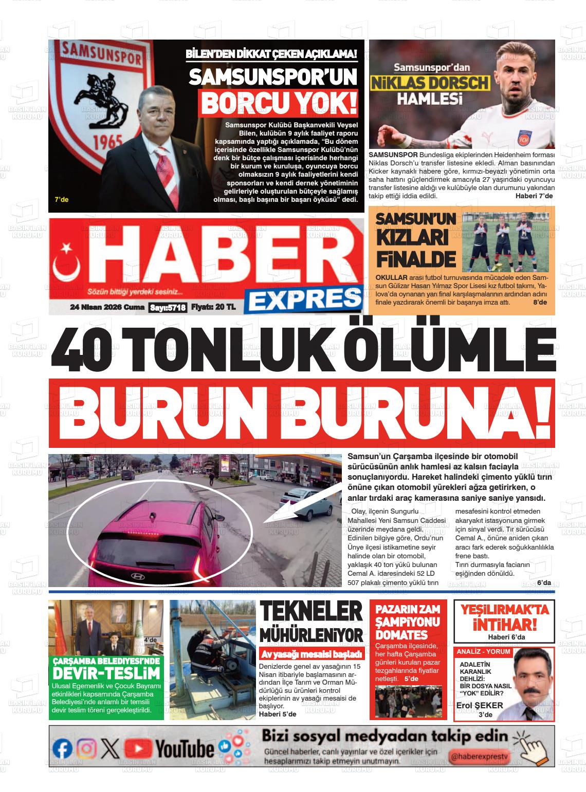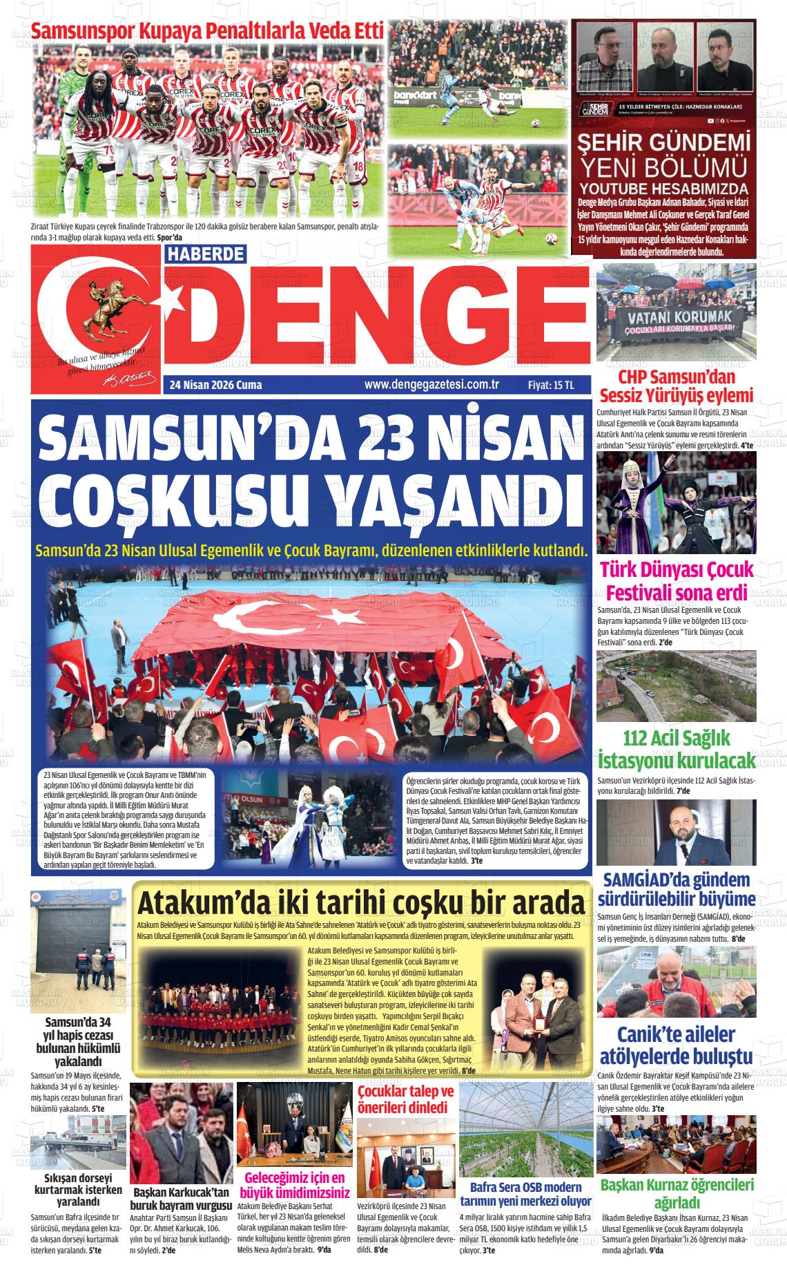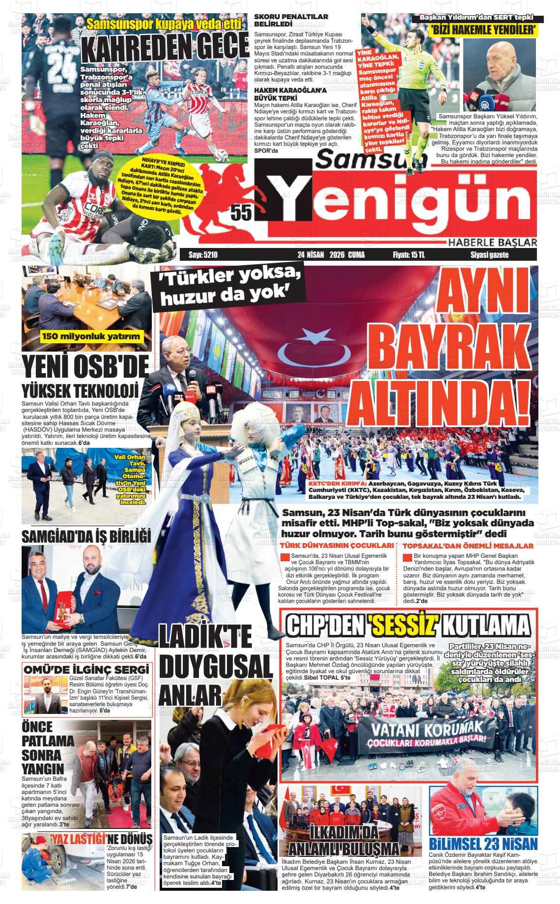 Samsun Yerel Gazeteleri 24 Nisan 2026, Cuma Günü Manşeti