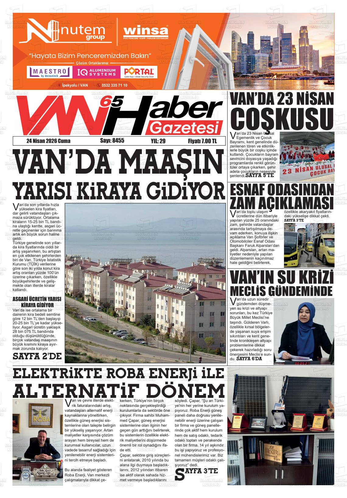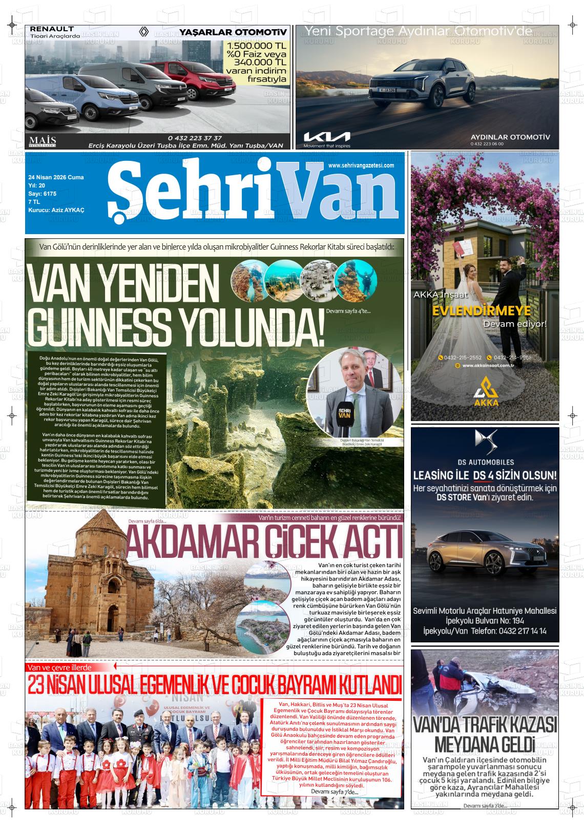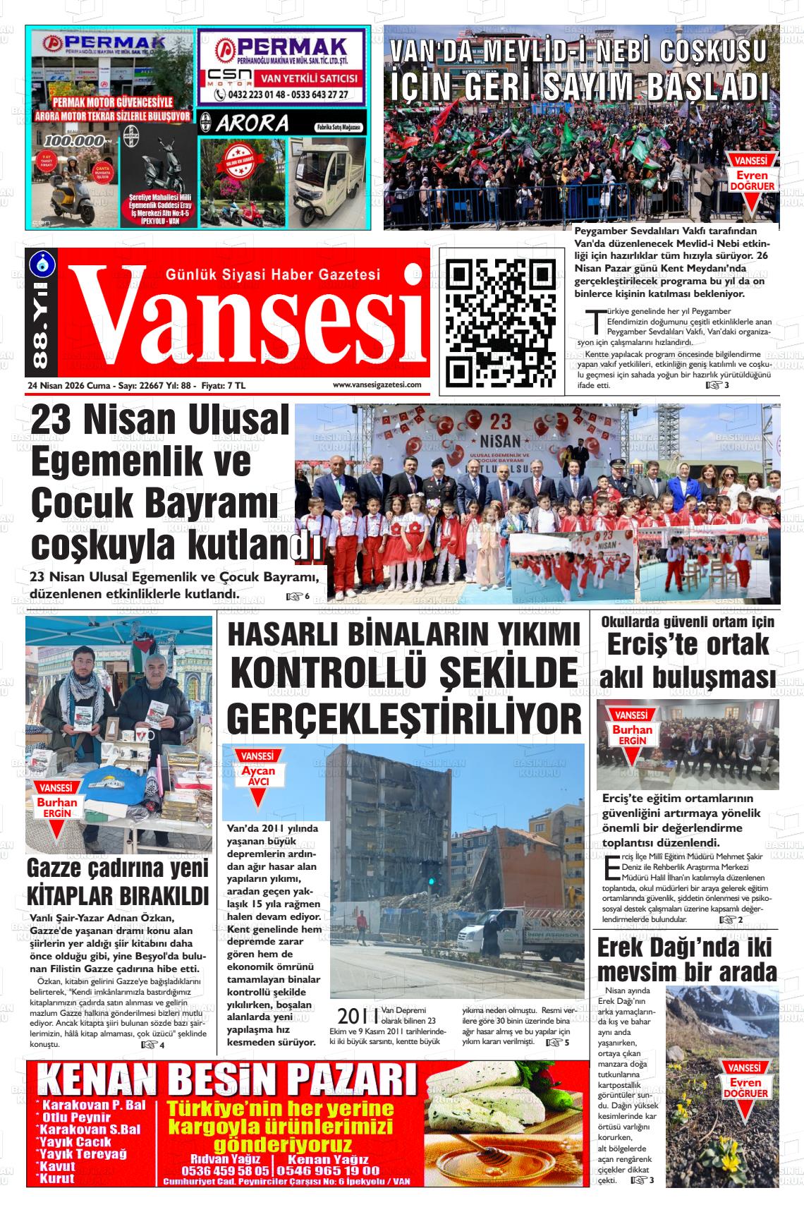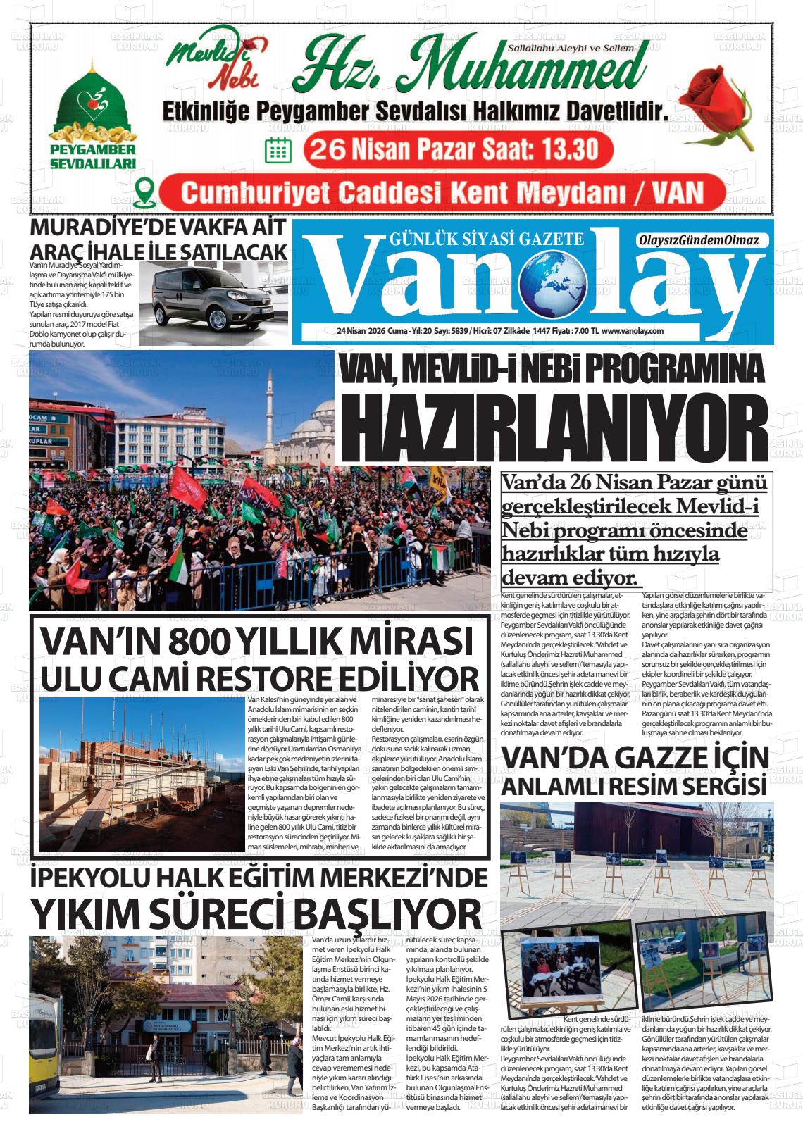 Van Yerel Gazeteleri 24 Nisan 2026, Cuma Günü Manşeti