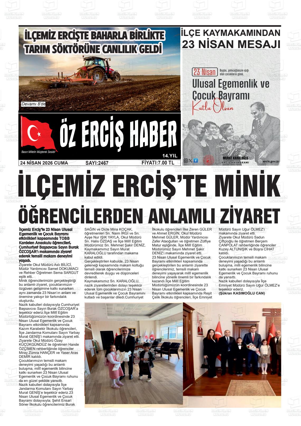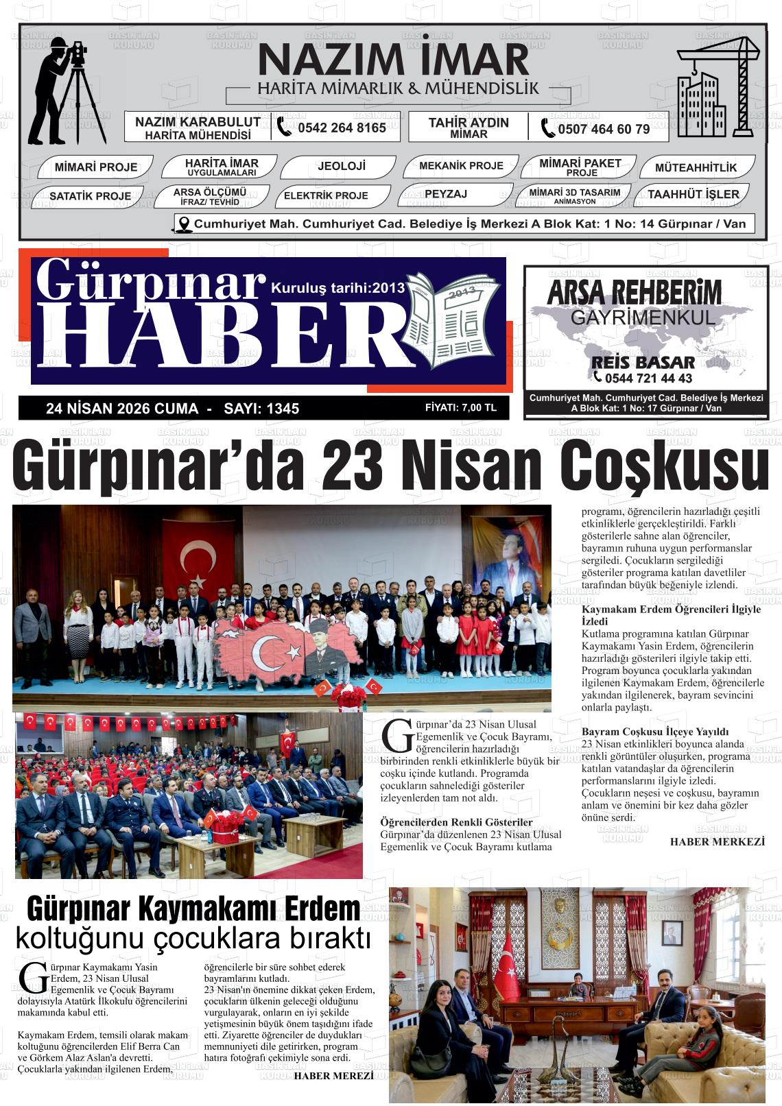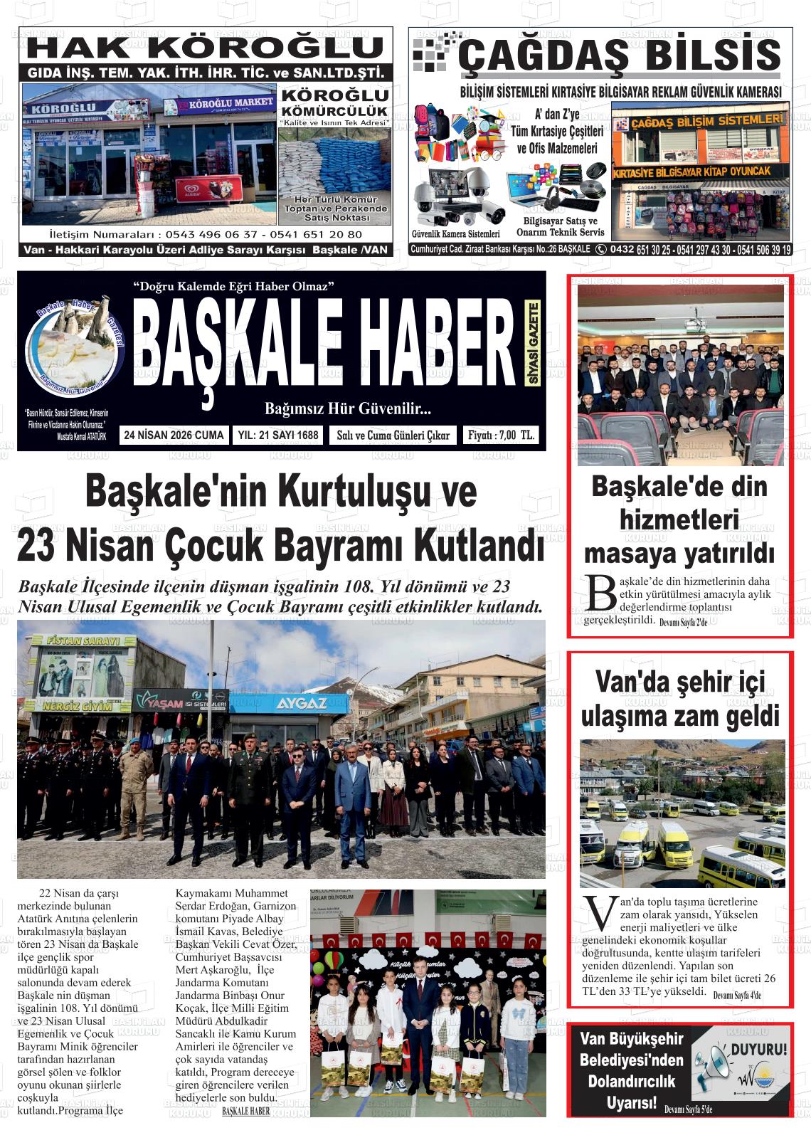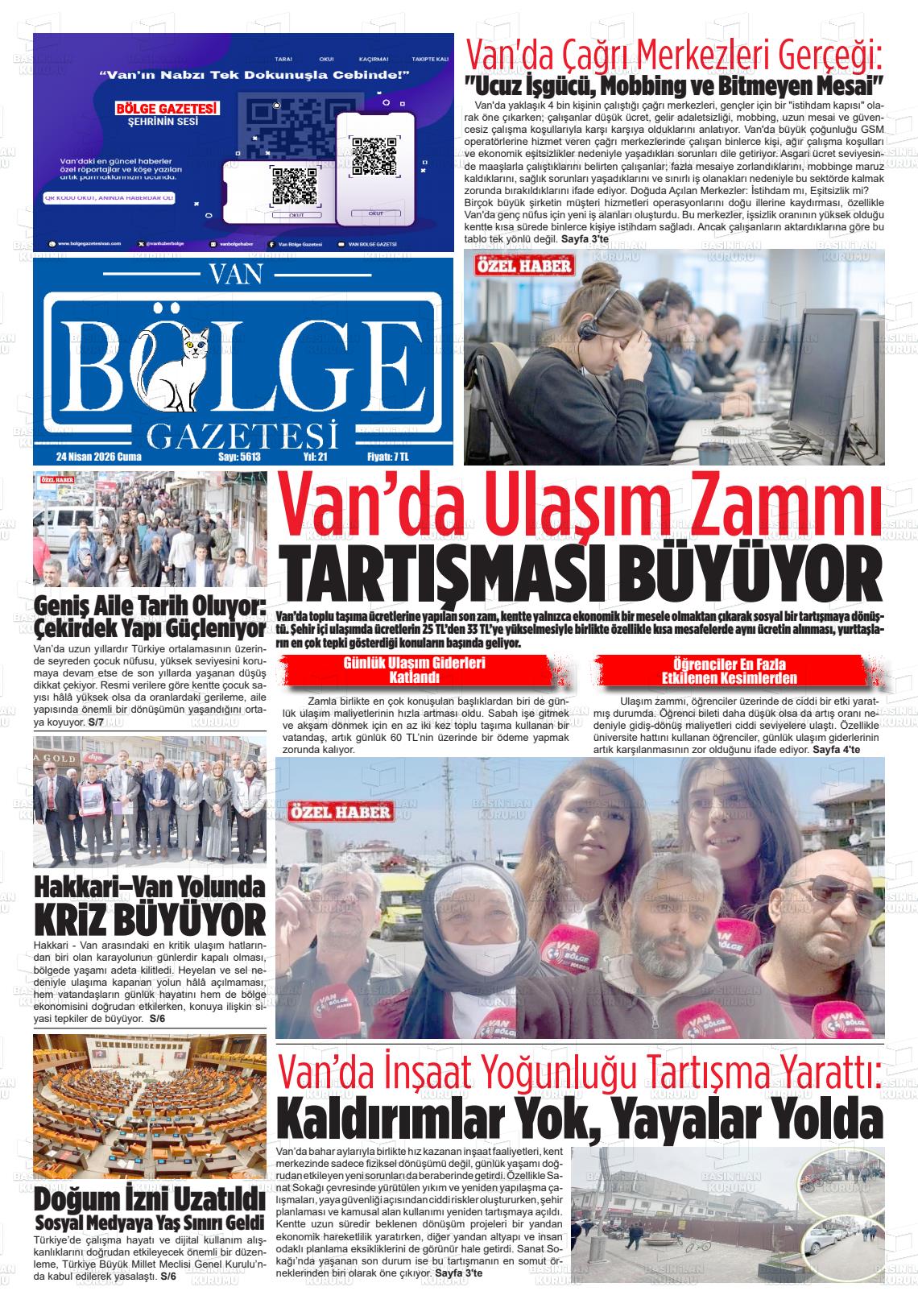 Van Yerel Gazeteleri 24 Nisan 2026, Cuma Günü Manşeti