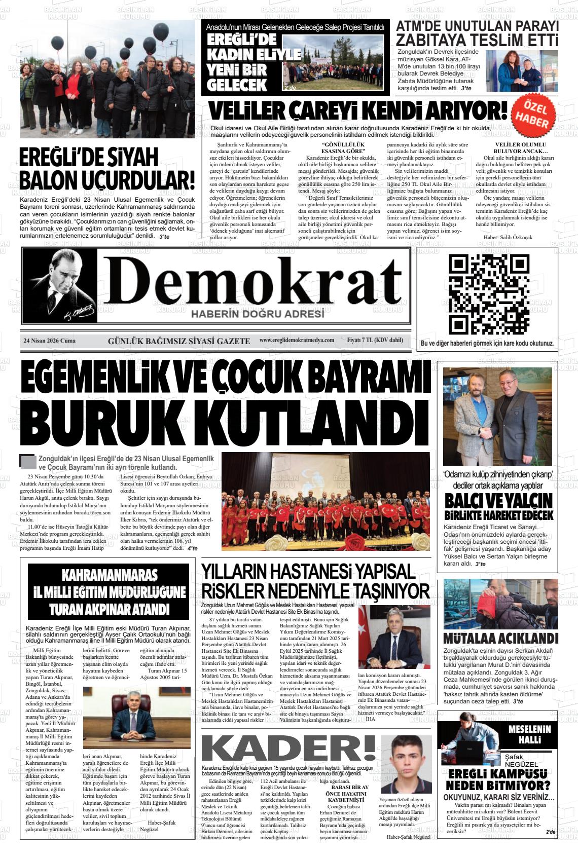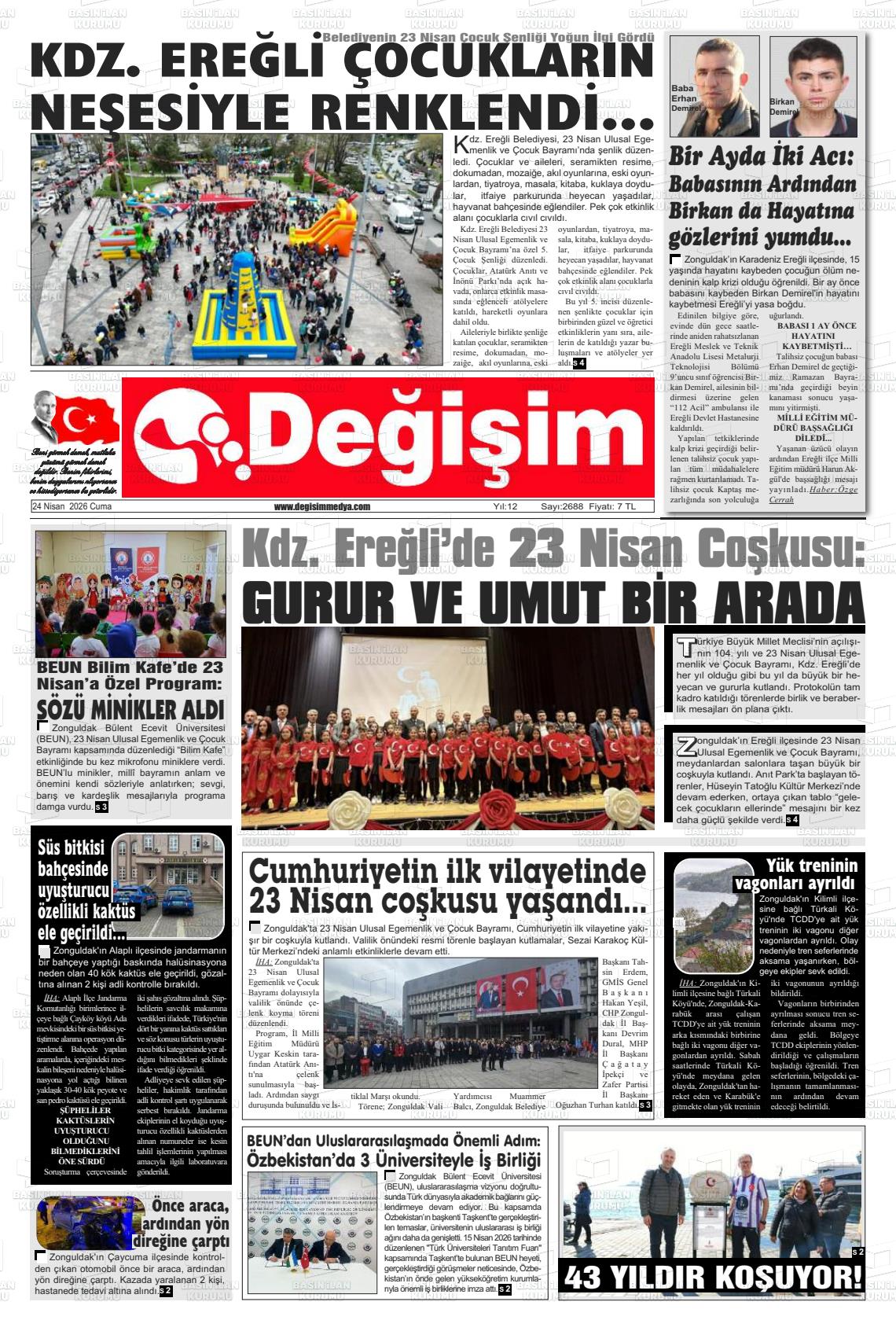 Zonguldak Yerel Gazeteleri 24 Nisan 2026, Cuma Günü Manşeti