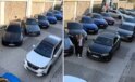 Üniversitenin otoparkında sıra sıra dizilen otomobillere bakın